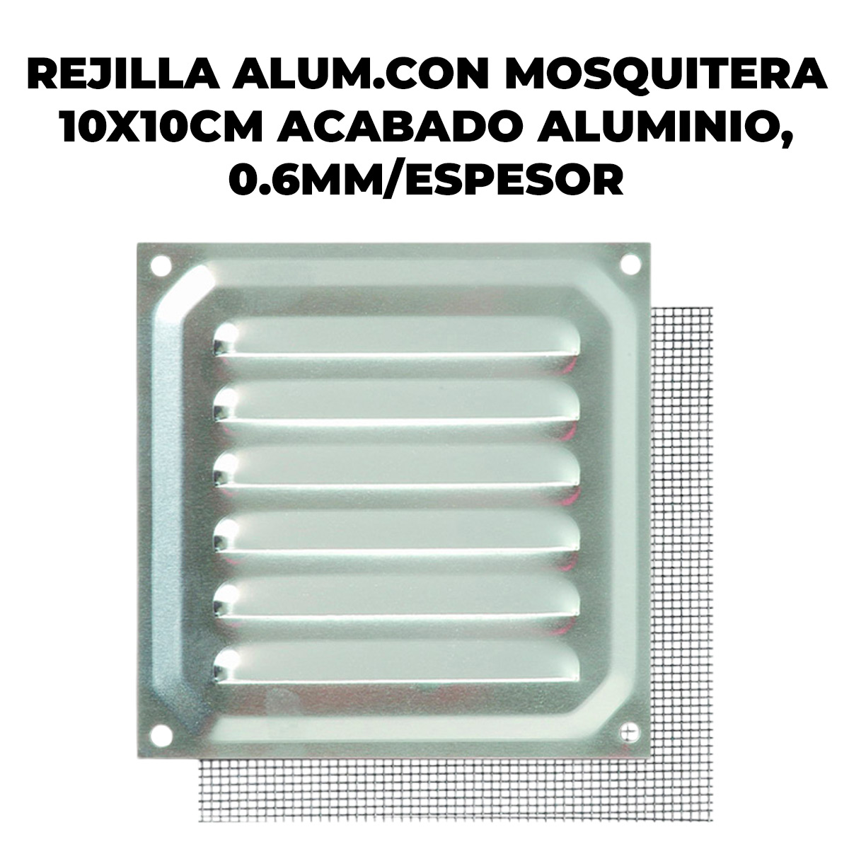 REJILLA ALUMINIO CON MOSQUITERA 4X4" (10X10CM) ACABADO ALUMINIO 0.6MM/ESPESOR