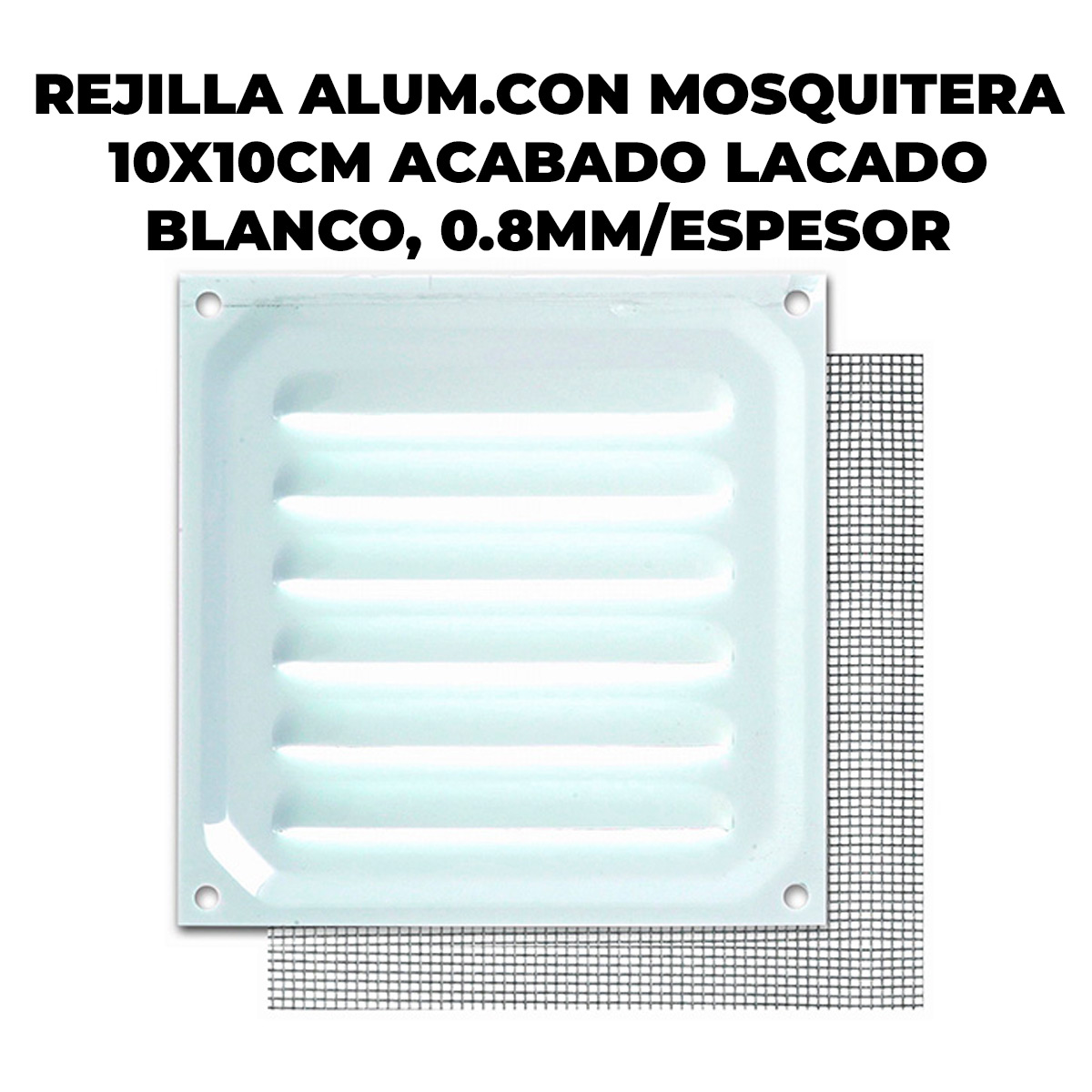 REJILLA ALUMINIO CON MOSQUITERA 4X4" (10X10CM) ACABADO LACADO BLANCO, 0.8MM/ESPESOR