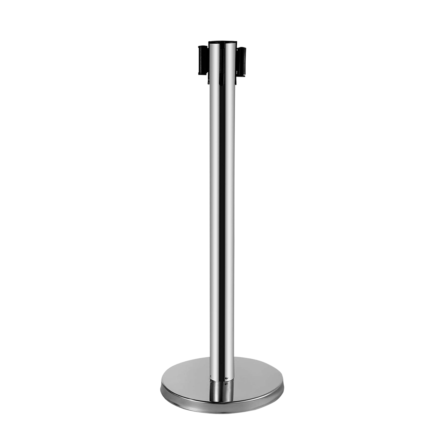 POSTE SEPARADOR ORDENADOR DE FILAS ACERO INOX 12" X 35" CINTA COLOR NEGRO 2¨ DE ANCHO X LARGO 2M