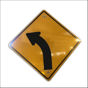 TABLERO SEÑAL PREVENTIVA GIRAR IZQ 61CMX61CM ALUM