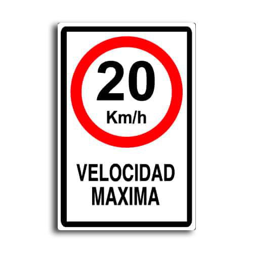 TABLERO SEÑAL REGLAMENTARIA DE MAX VELOCIDAD 20KM/H 61CMX91CM ALUM