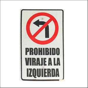 TABLERO SEÑAL PROHIBICION GIRAR IZQ 61CMX91CM ALUM