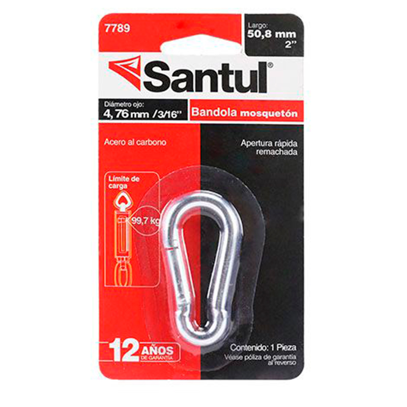 GANCHO BANDOLA MOSQUETON RAPIDA 1/4X2 1/2" ACERO, CAPAC.117KG