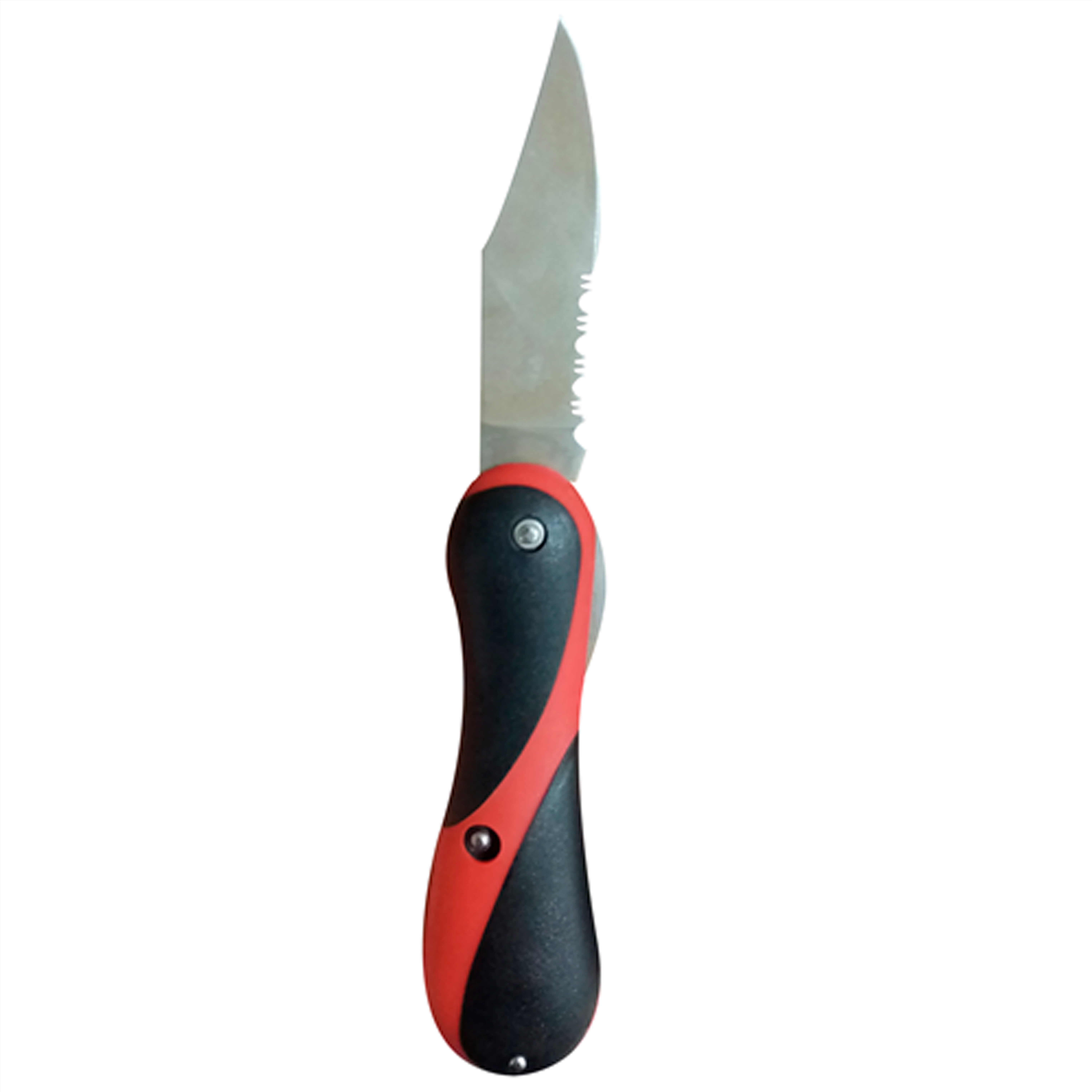 NAVAJA DENTADA PLEGABLE 180MM CON SEGURO MANGO DE GOMA ROJO/NEGRO