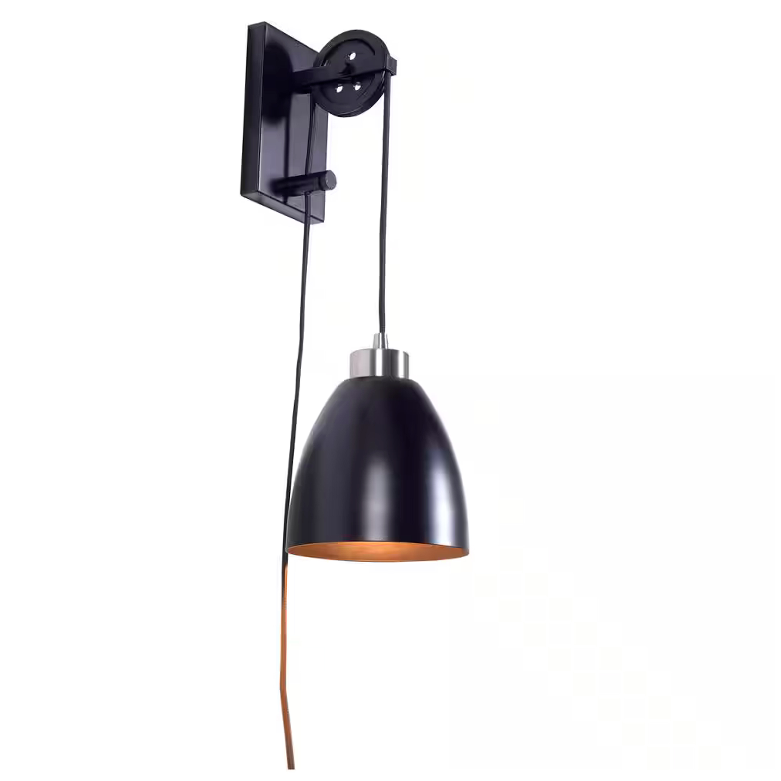 LAMPARA APLIQUE P/PARED INTERIOR NEGRA D/NIQUEL CEPILLADO C/1LUZ BOMBILLA INCLUIDA NEEDHAM
