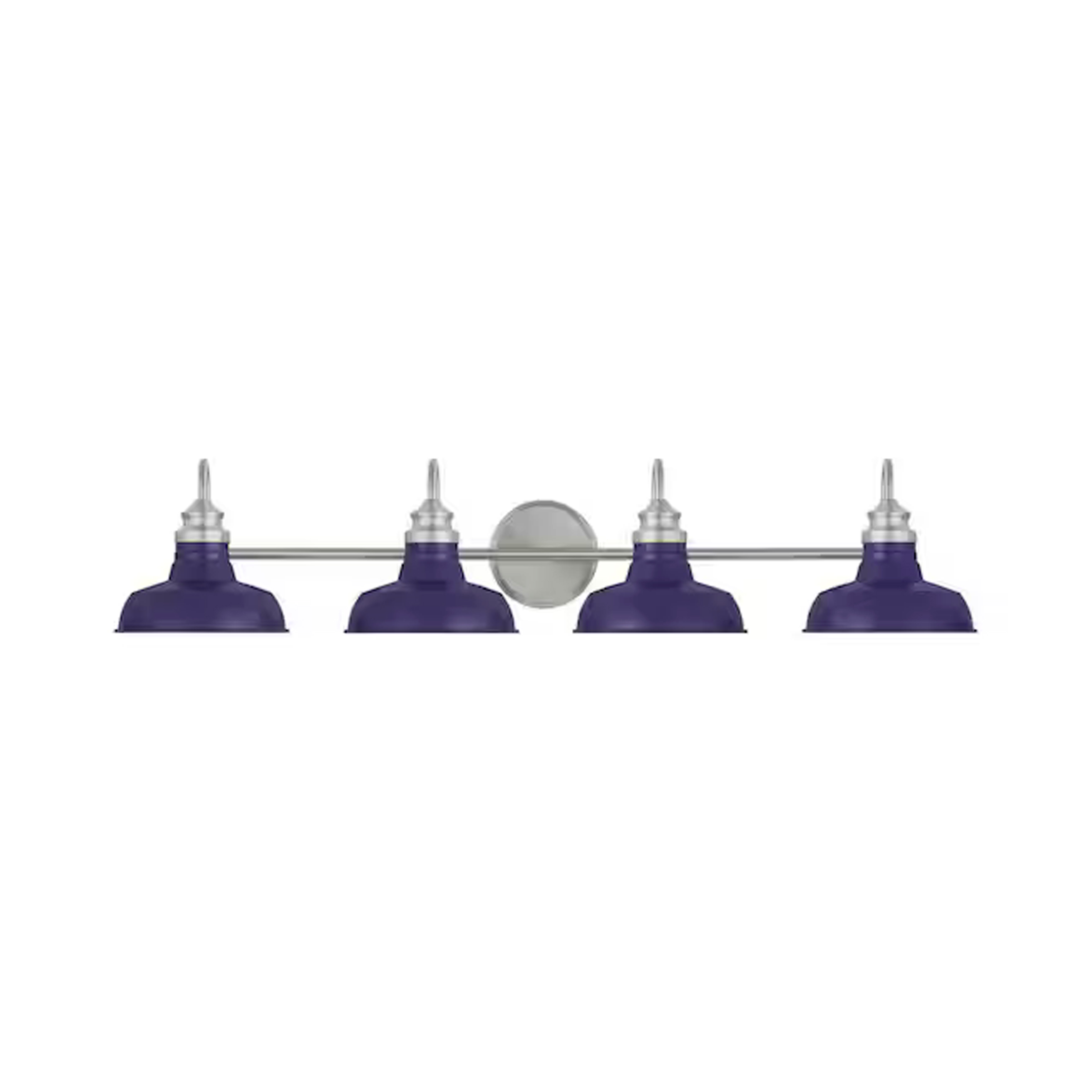 LAMPARA D/TOCADOR E/GRANJA C/PANTALLAS D/METAL AZUL OSCURO C/BASE NIQUEL C/4LUCES 38PULG ELMCROFT