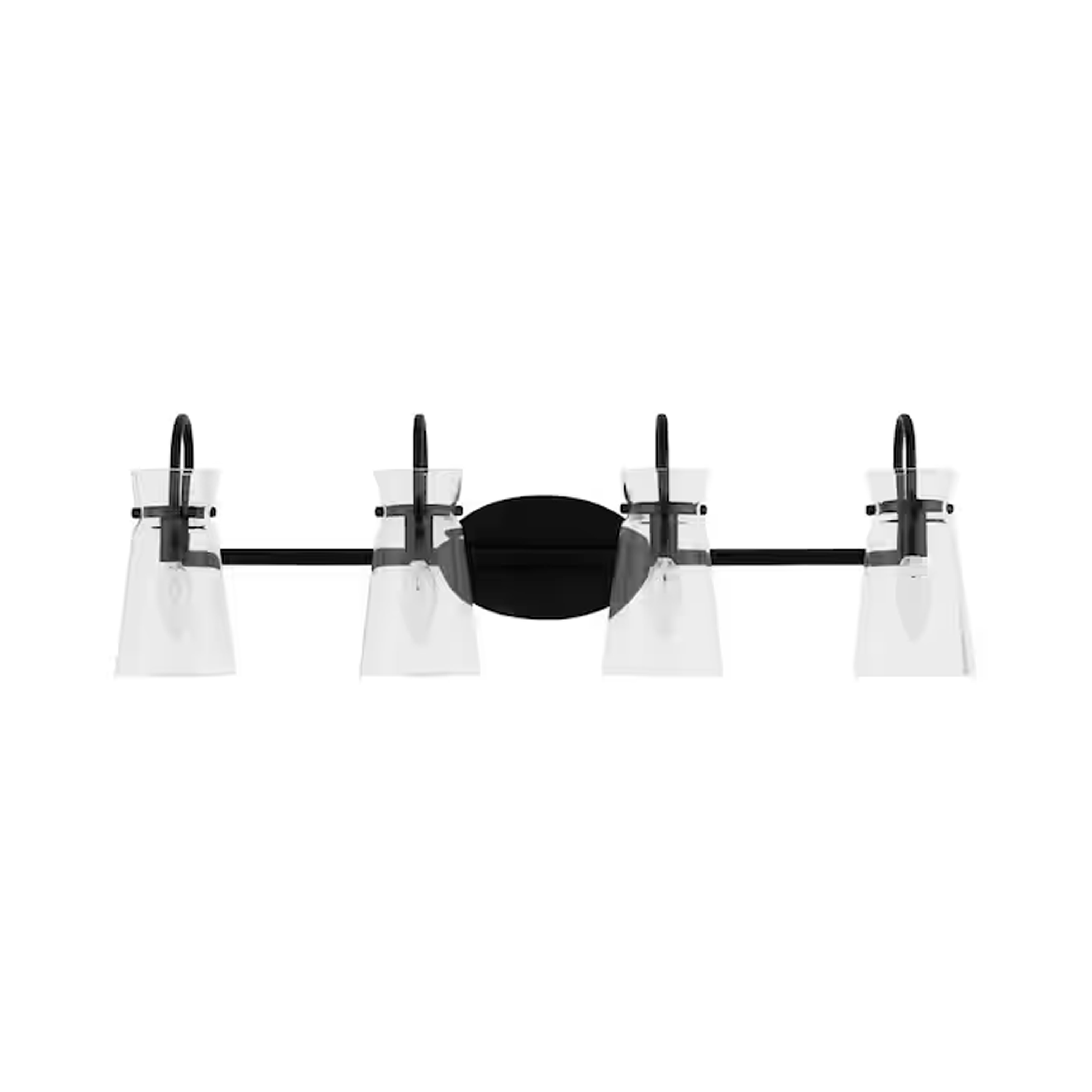 LAMPARA D/TOCADOR D/BAÑO NEGRO MATE C/4LUCES 31PULG C/PANTALLA D/VIDRIO TRANSPARENTE VINTON PLACE