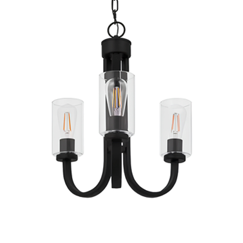 LAMPARA COLGANTE E/ARAÑA NEGRO MATE C/3LUCES PANTALLA D/VIDRIO TRANSPARENTE KENDALL MANOR