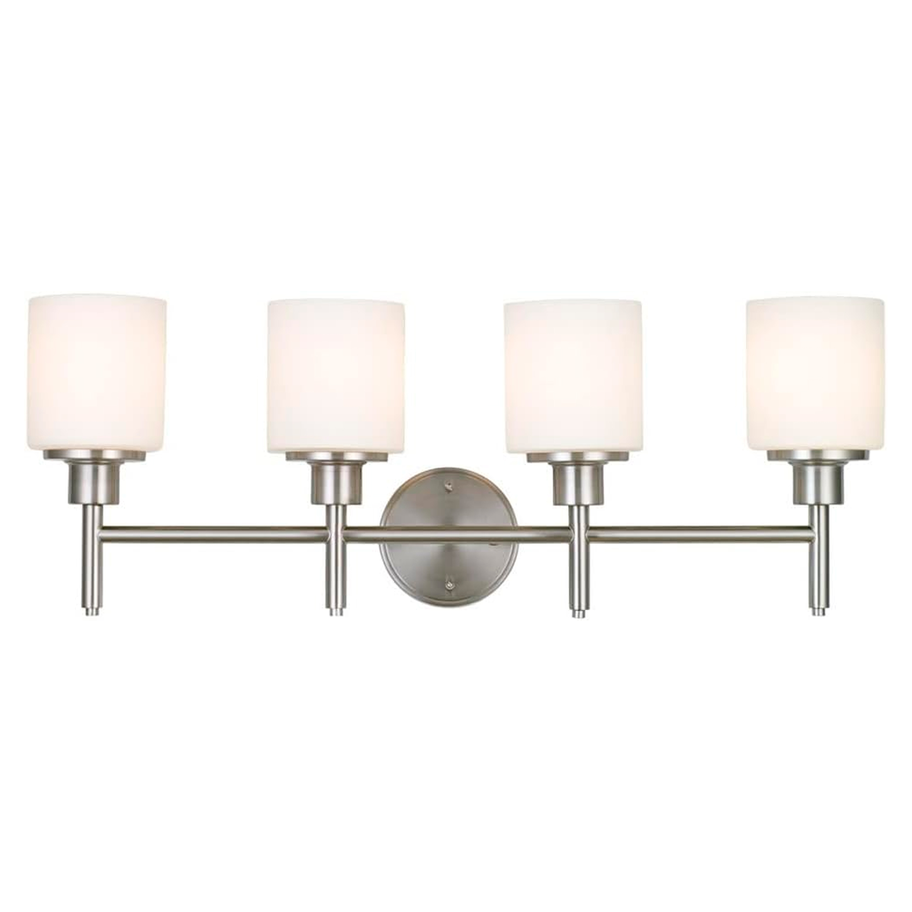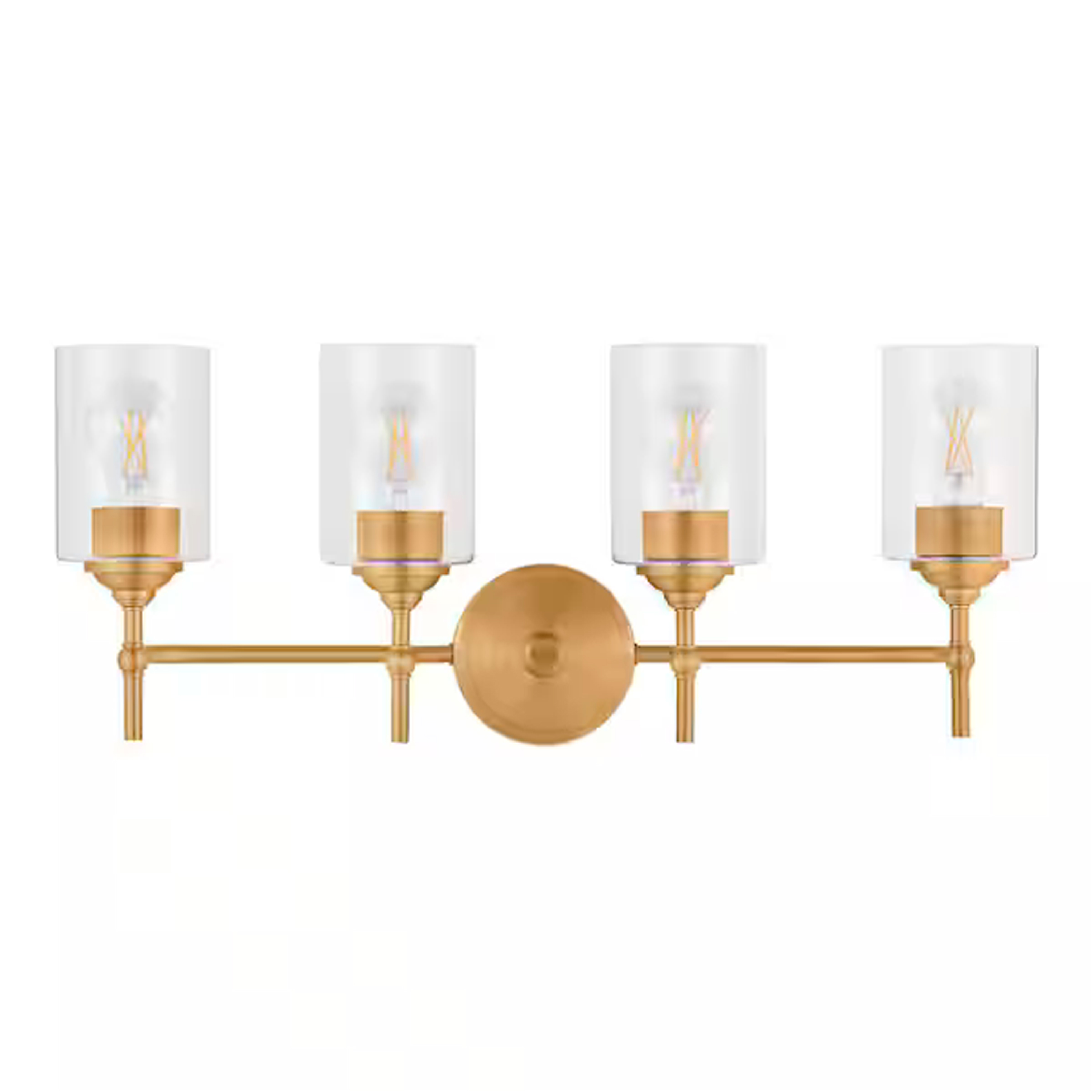 LAMPARA D/TOCADOR DE BAÑO DE NIQUEL B/4LUCES DE 31PULG. C/PANTALLA DE VIDRIO TRANSPARENTE VINTON