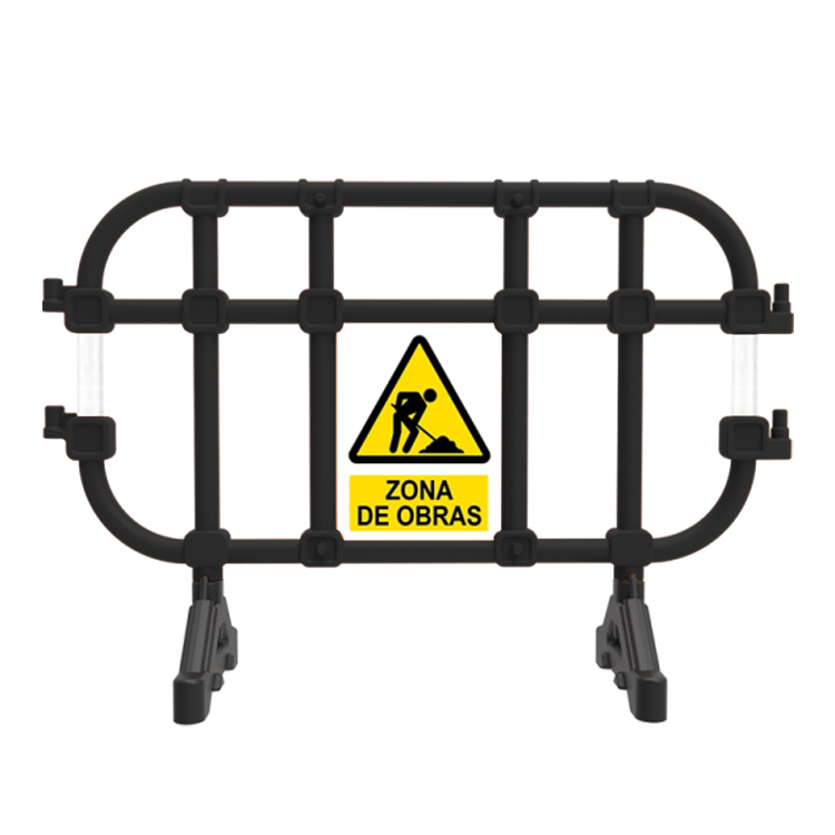 BARRERA TUBULAR NEGRA CON REFLEJANTE BLANCO PATAS SIN ARENA
