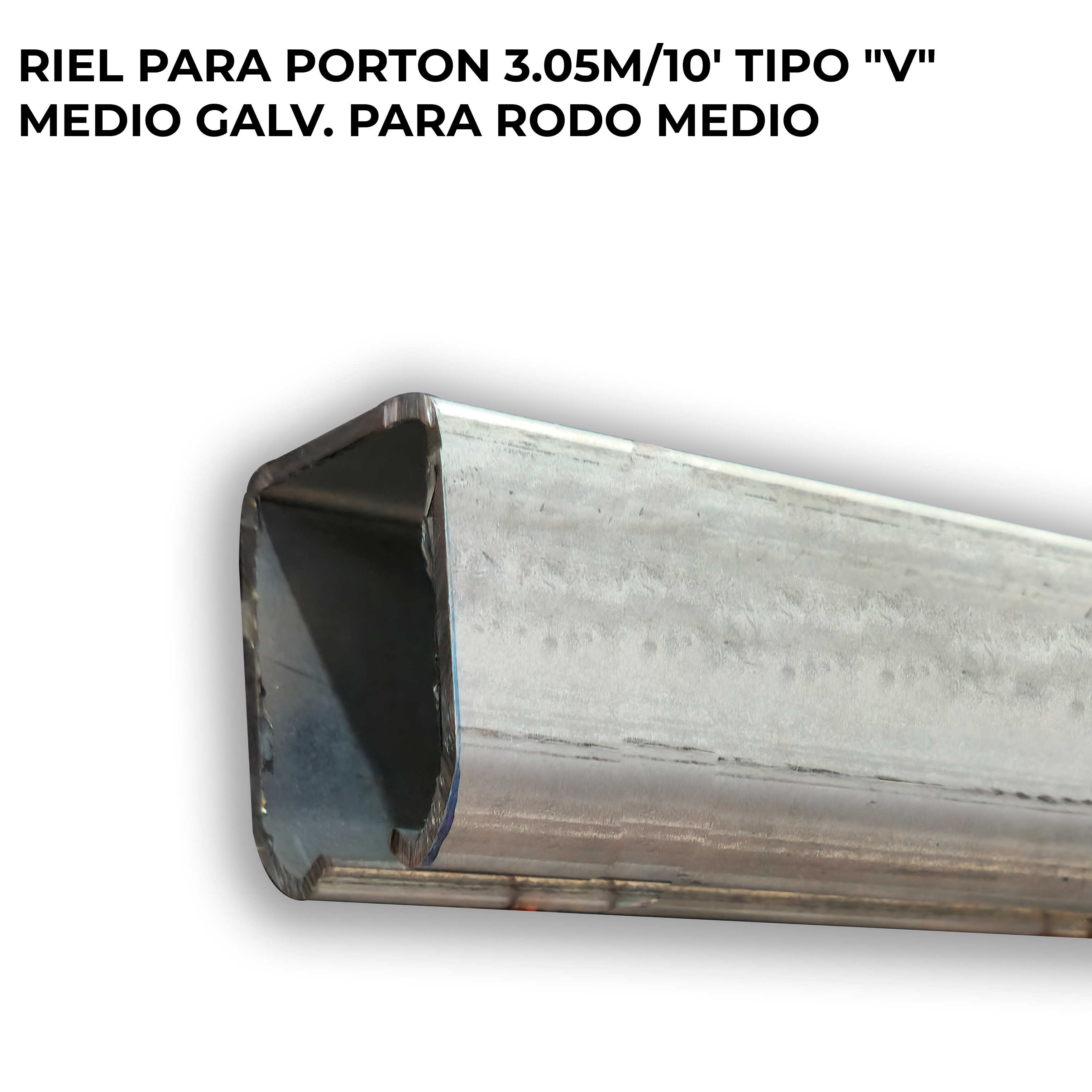 RIEL PARA PORTON 3.05M/10 TIPO "V" MEDIO GALV. PARA RODO MEDIO