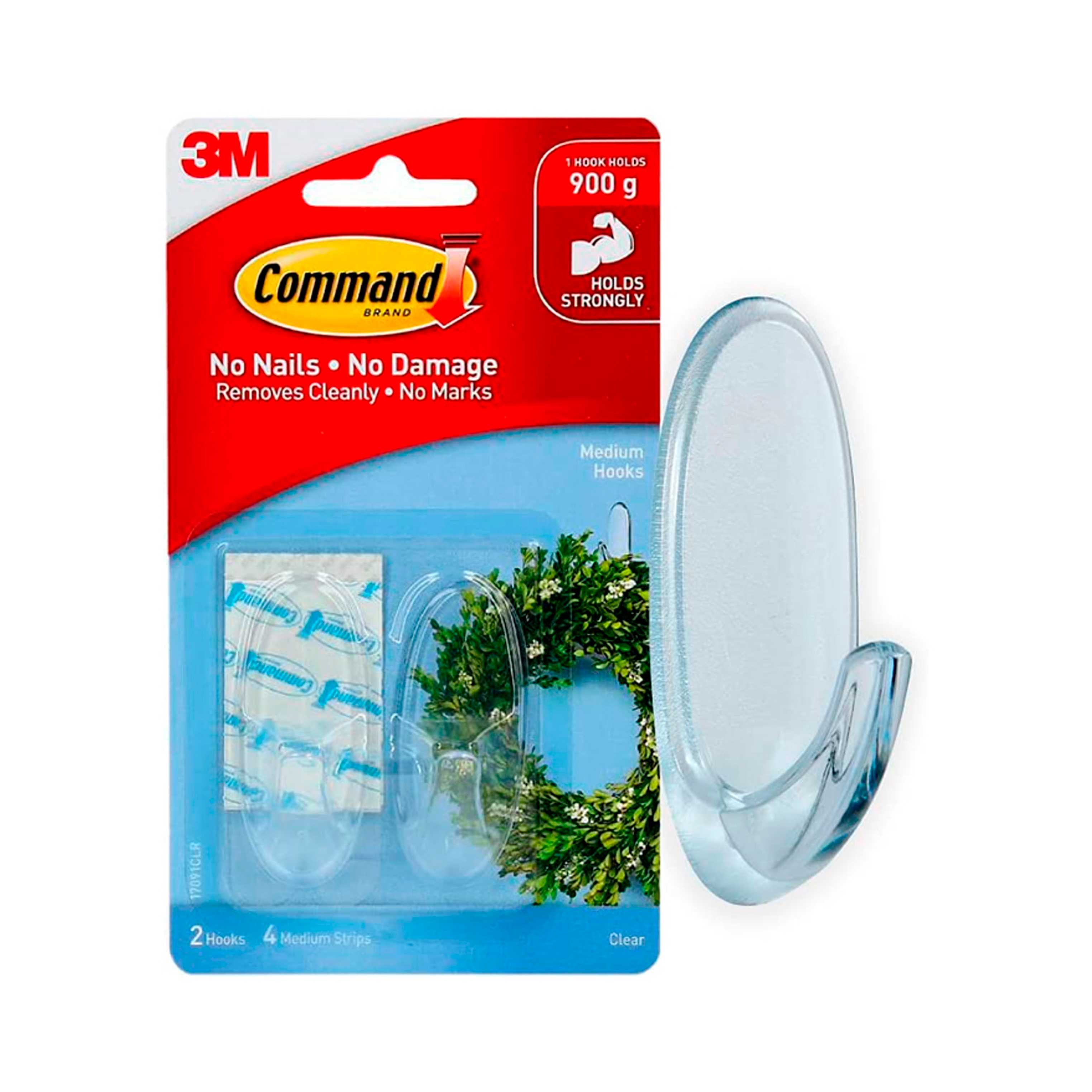 PK.1 GANCHO PLAST. TRANSPARENTE 3M TAMAÑO "L" C/ADHESIVO CAPACIDAD 4LBS