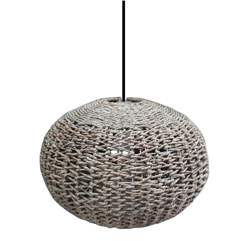LAMPARA COLGANTE DE RATTAN NATURAL CON BOMBILLO LED E27X7WX3000K, 14" DIAMETRO X 12" ALTO