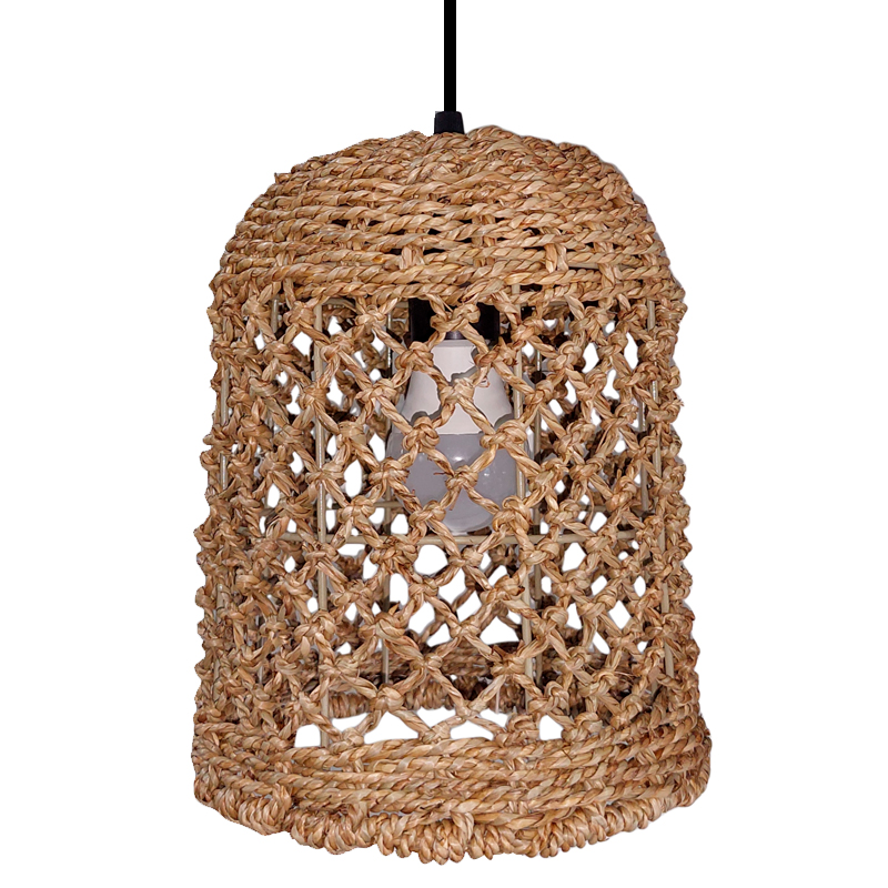 LAMPARA COLGANTE DE RATTAN NATURAL CON BOMBILLO LED E27X7WX3000K, 8" DIAMETRO X 10" ALTO