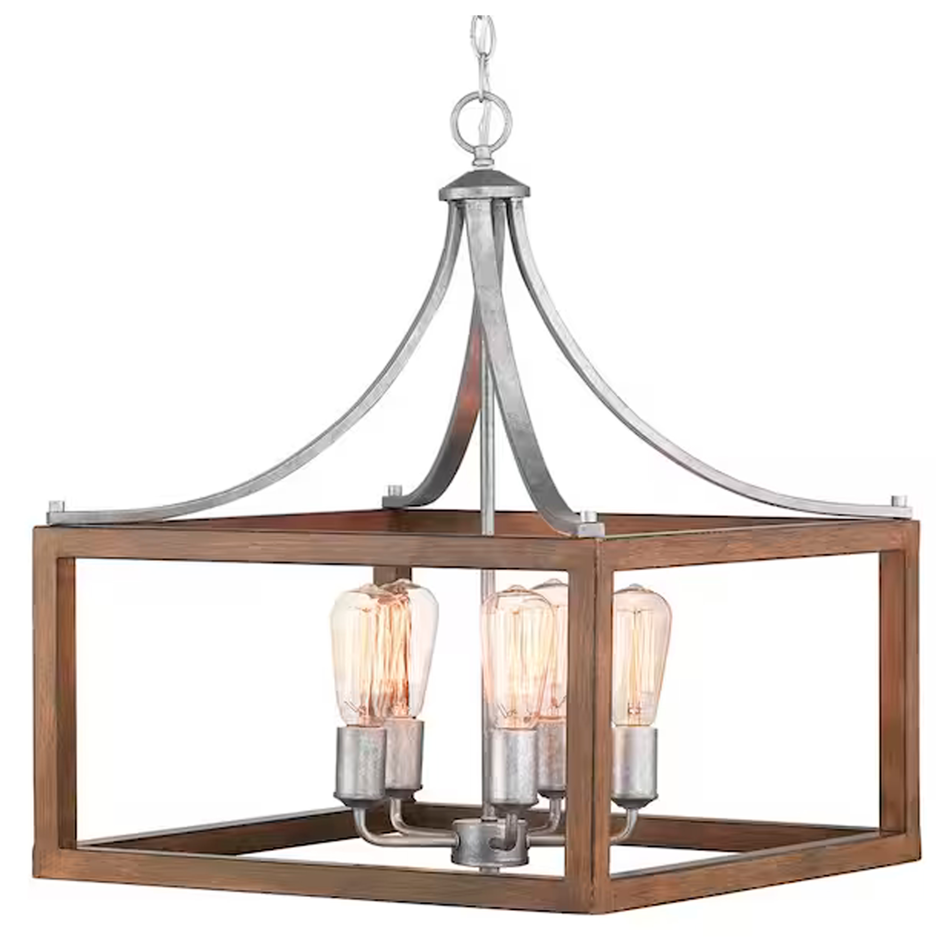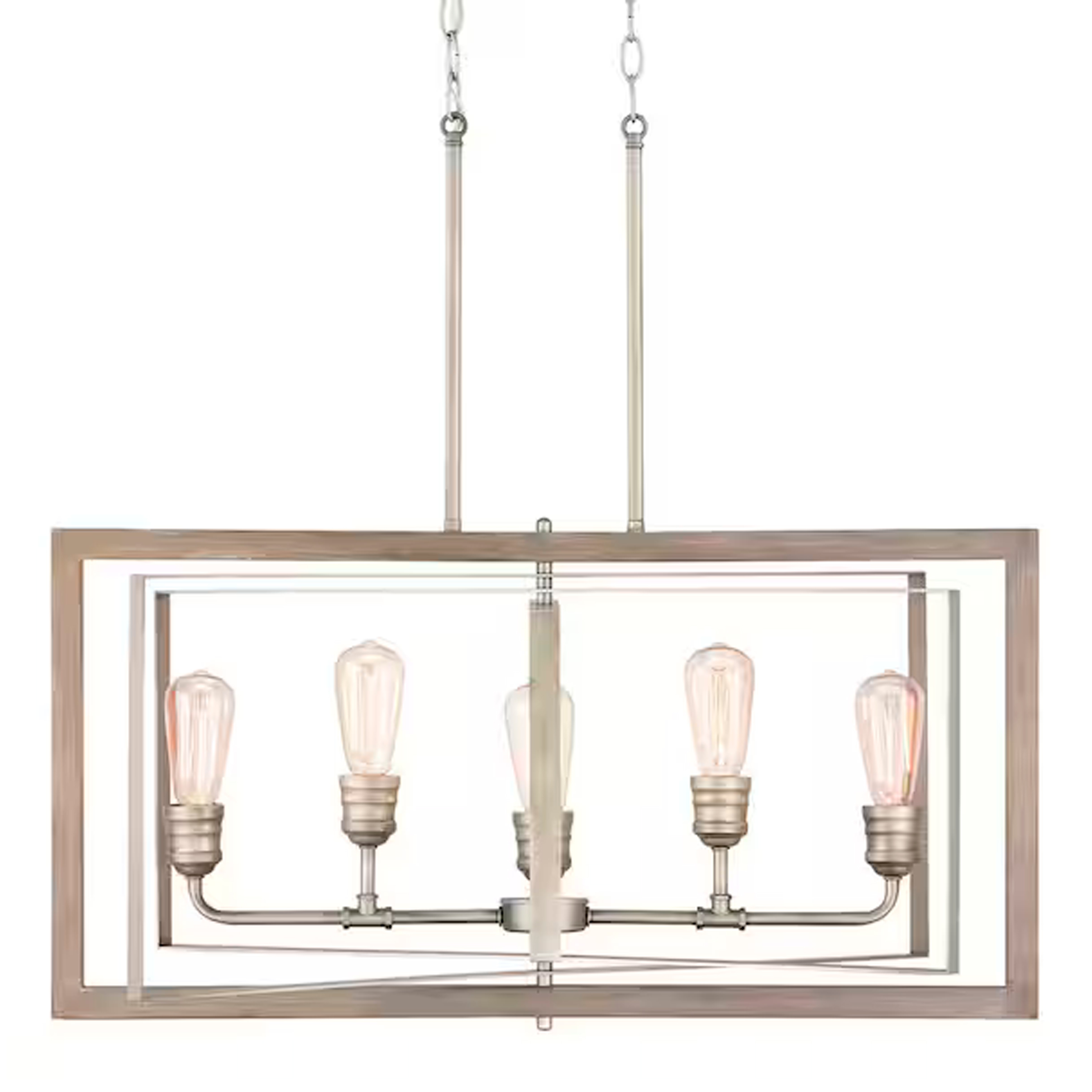 LAMPARA COLGANTE COSTERA PLATEADA P/COCINA C/5LUCES DE 20PULG. C/DETALLES DE MADERA HAMPTON