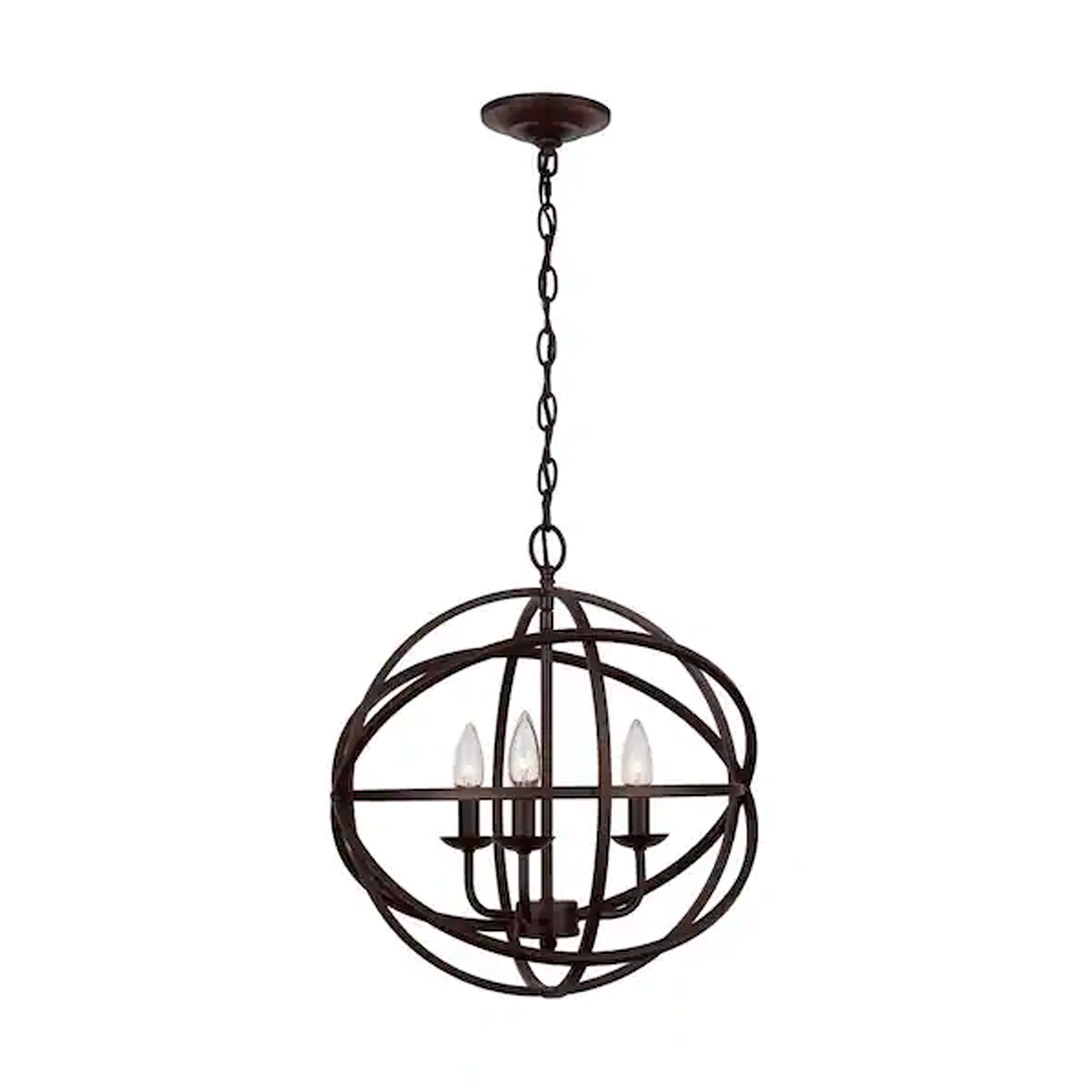 LAMPARA COLGANTE E/ARAÑA DE BRONCE C/3LUCES FORMA DE GLOBO ENJAULADO C/PANTALLA DE METAL SAROLTA E12