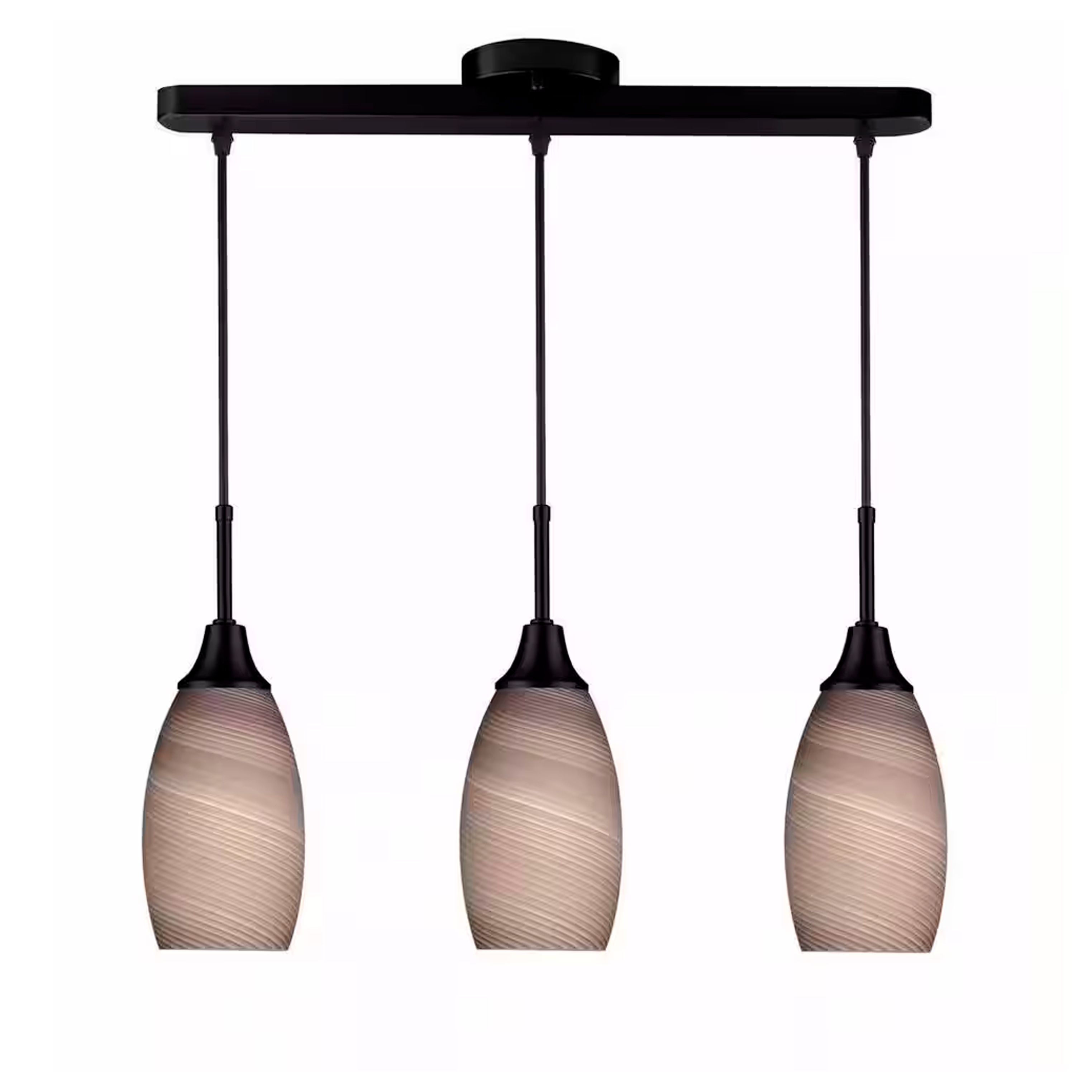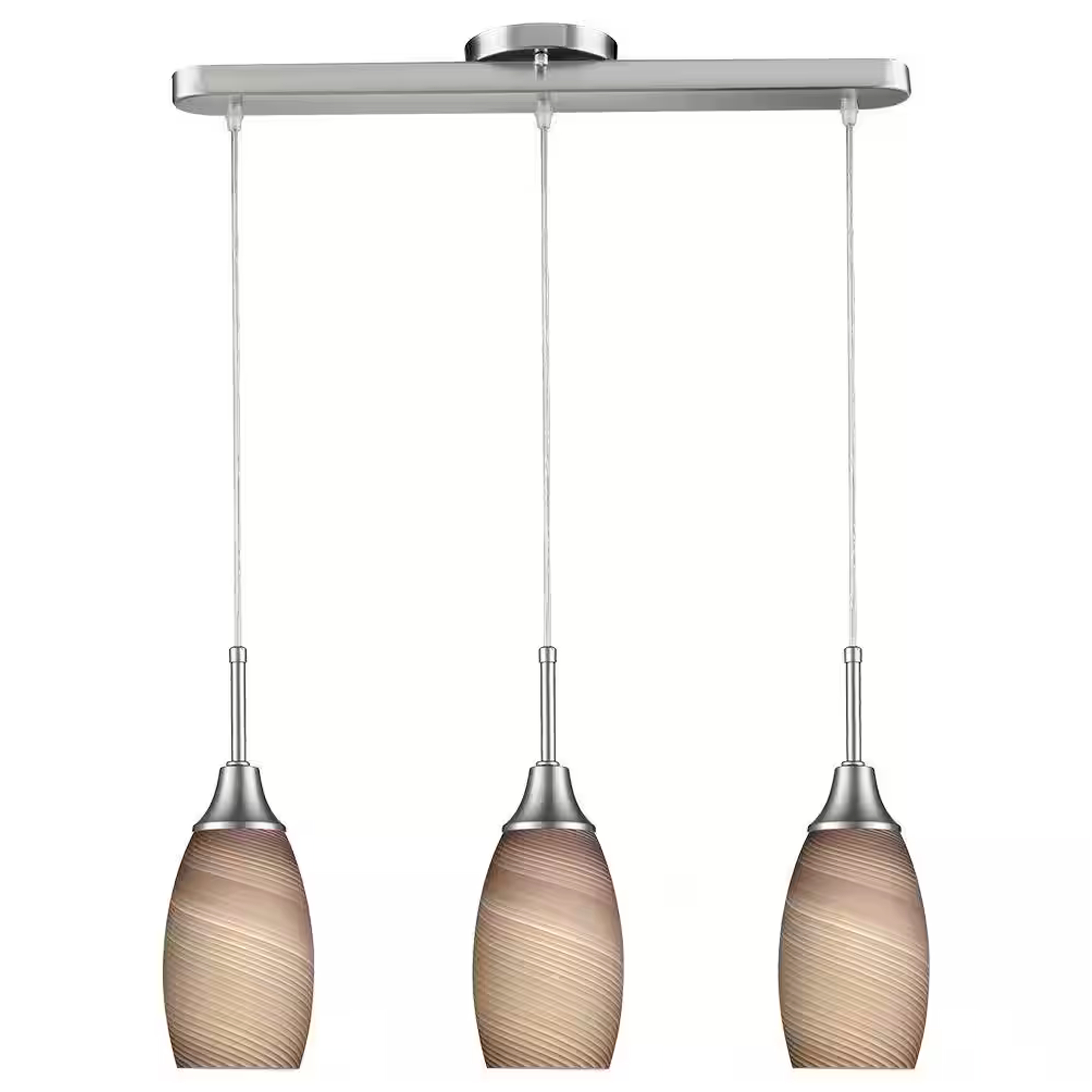 LAMPARA COLGANTE COSTERA PLATEADA P/COCINA C/3LUCES C/DETALLES D/MADERA CASTAÑO 14PULG. HAMPTON