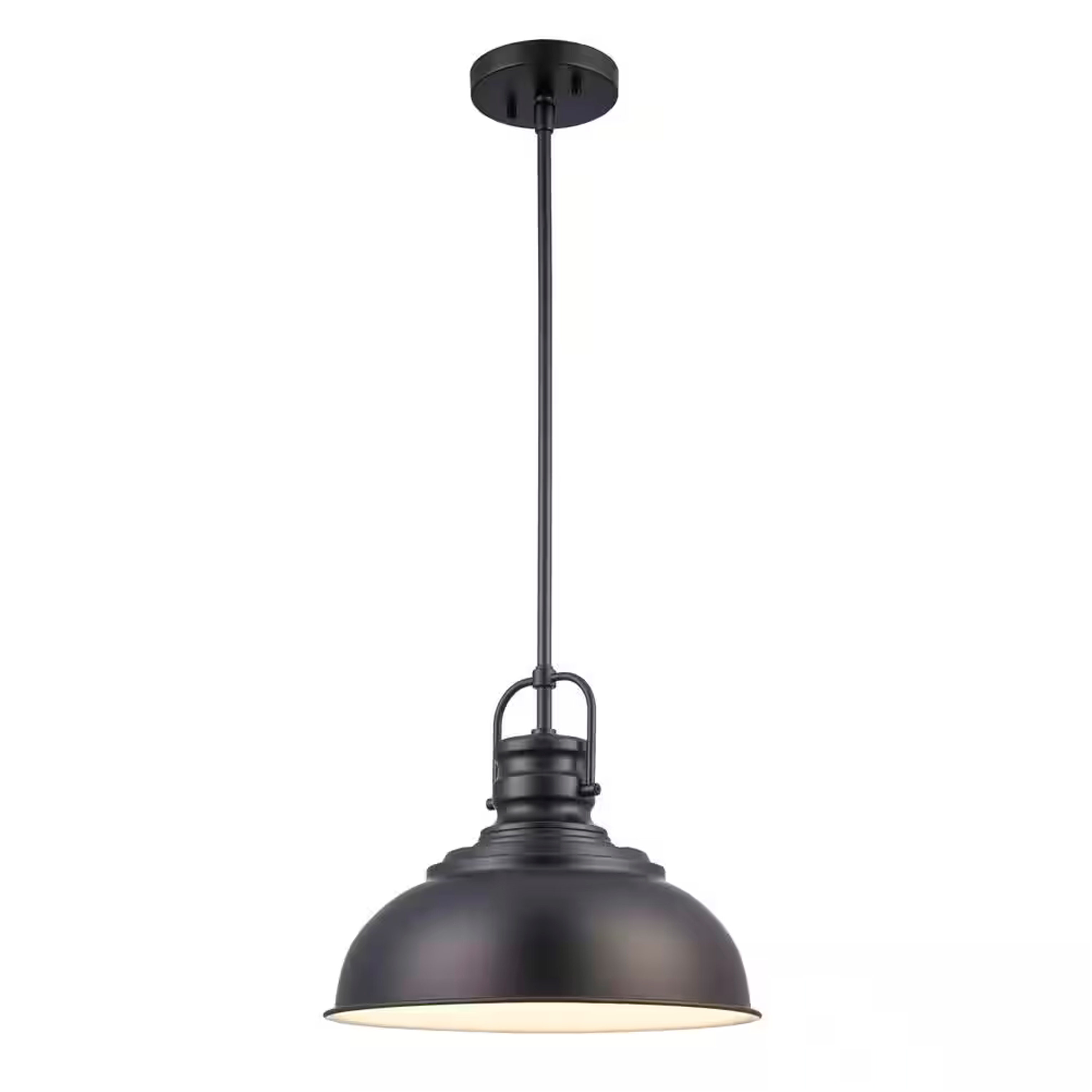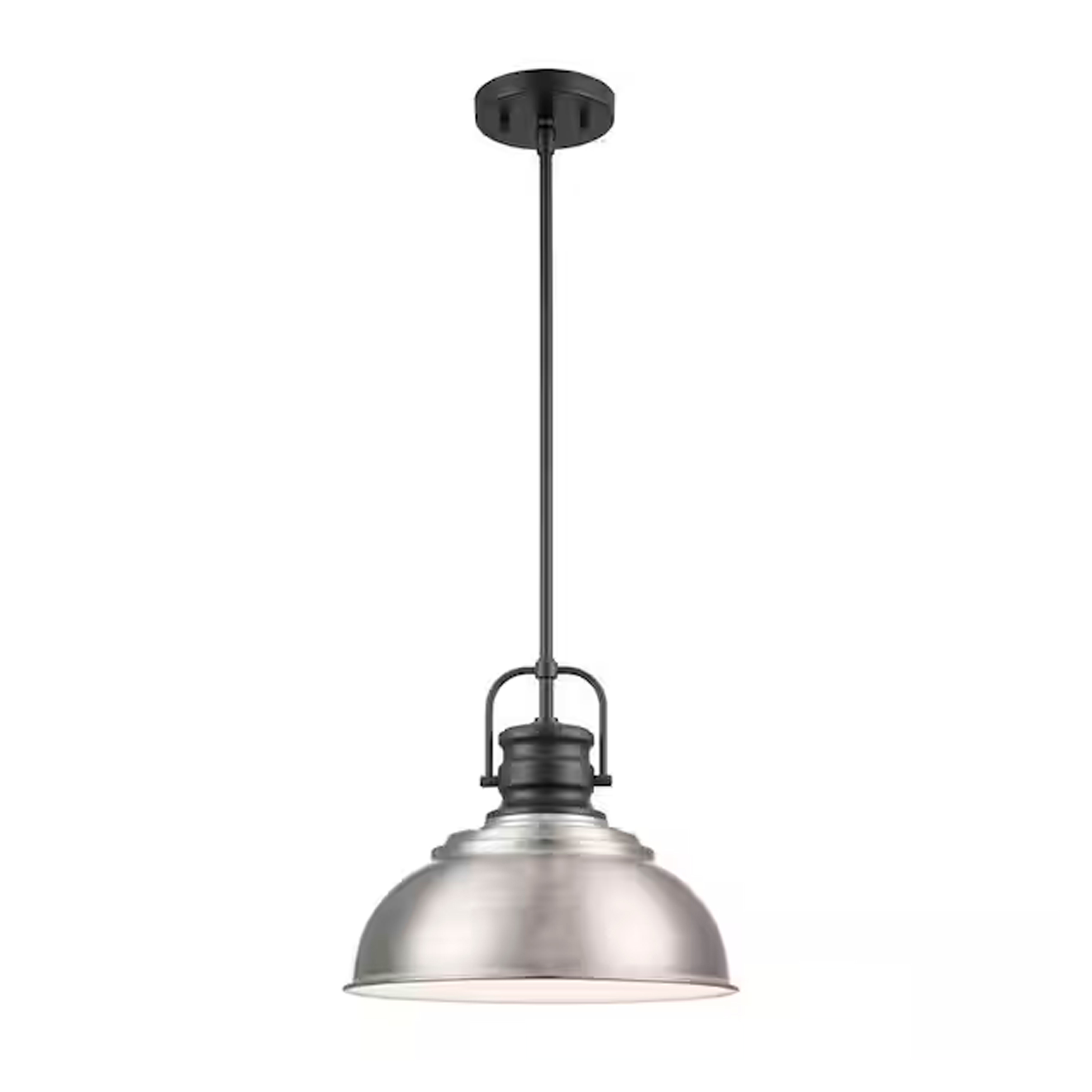 LAMPARA COLGANTE E/GRANJA D/NIQUEL CEPILLADO Y NEGRO C/1LUZ 13PULG C/PANTALLA D/METAL SHELSTON