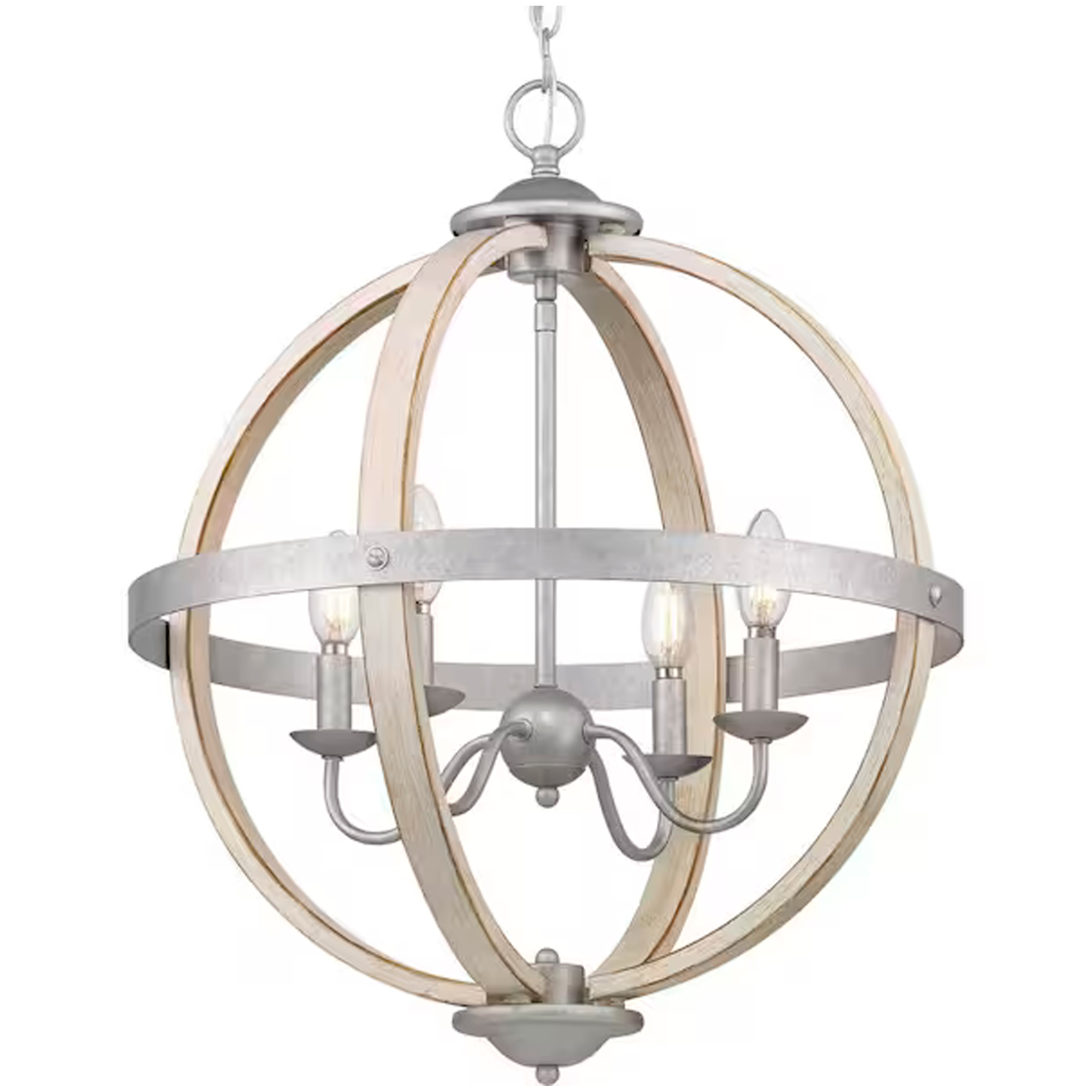 LAMPARA COLGANTE TIPO ORBE D/GRANJA C/4LUCES 19.88PULG C/DETALLES EN MADERA BLANCA ENVEJECIDA KEOWEE