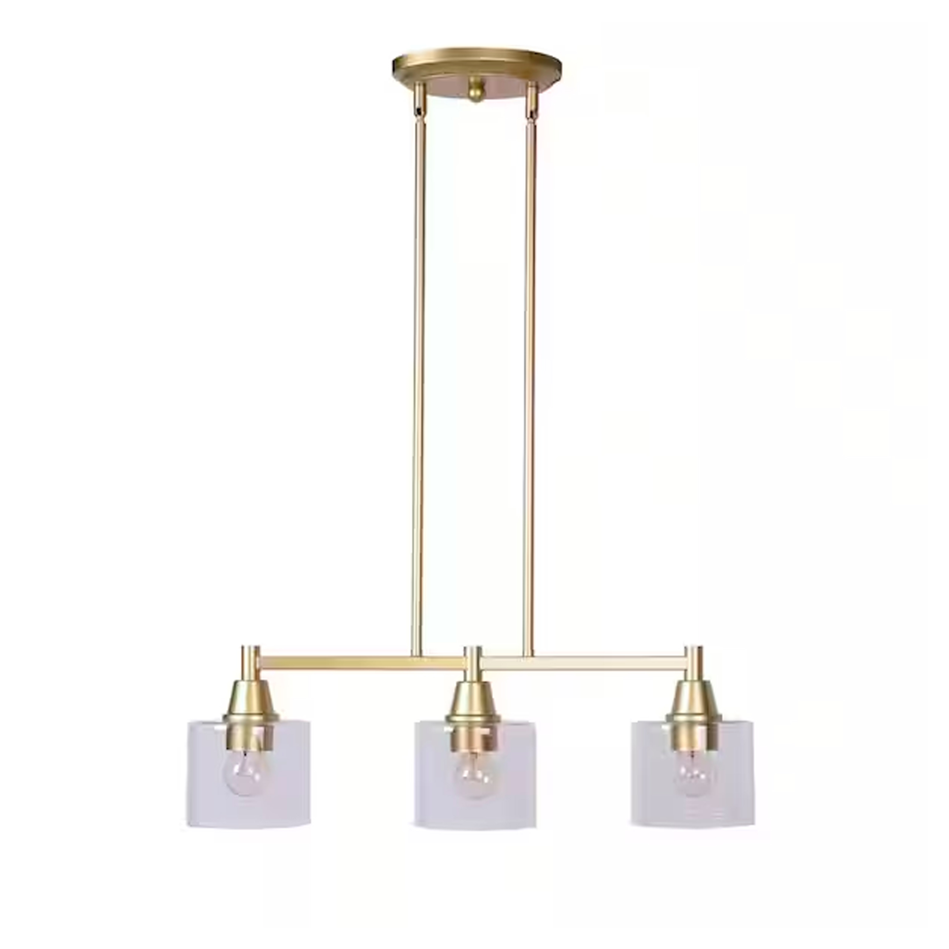LAMPARA COLGANTE D/ISLA LINEAL DORADA C/3LUCES C/PANTALLAS D/VIDRIO TRANSPARENTE ORON