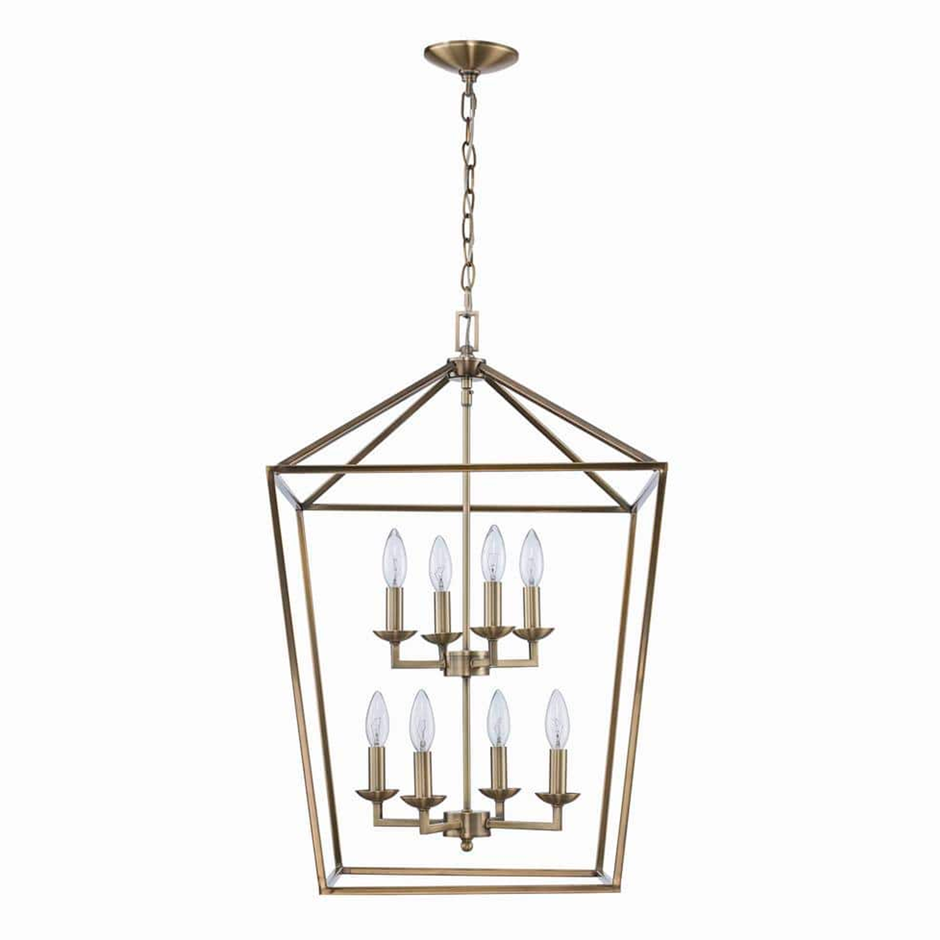 LAMPARA COLGANTE E/ARAÑA DORADA C/PANTALLA D/METAL ENJAULADA C/8LUCES WEYBURN E12