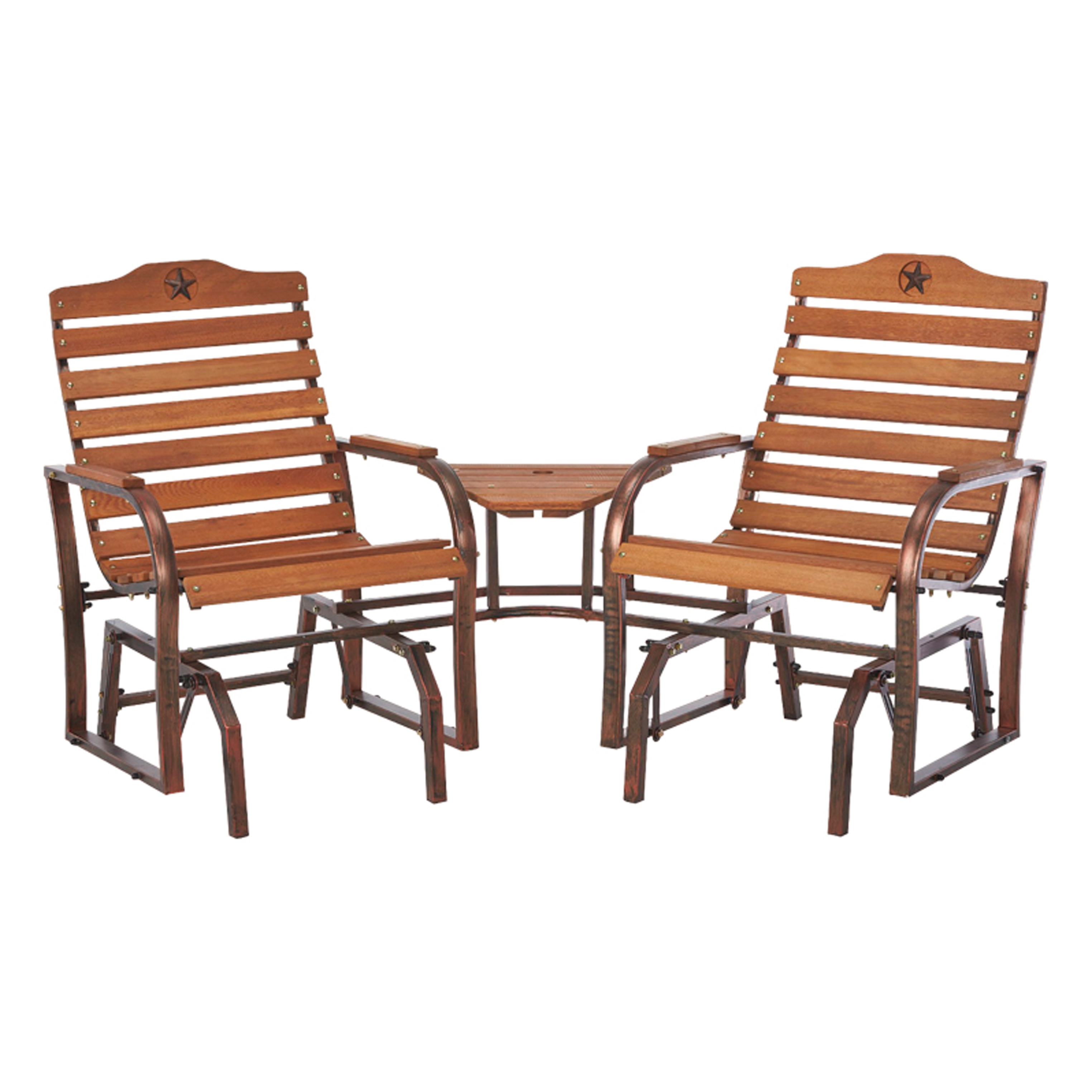JUEGO 2 SILLAS Y MESITA PARA JARDIN, ACABADO COBRE NATURAL, 21.5X18.5" CAPACIDAD 250 LIBRAS MODELO T