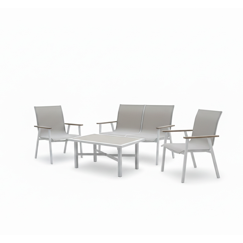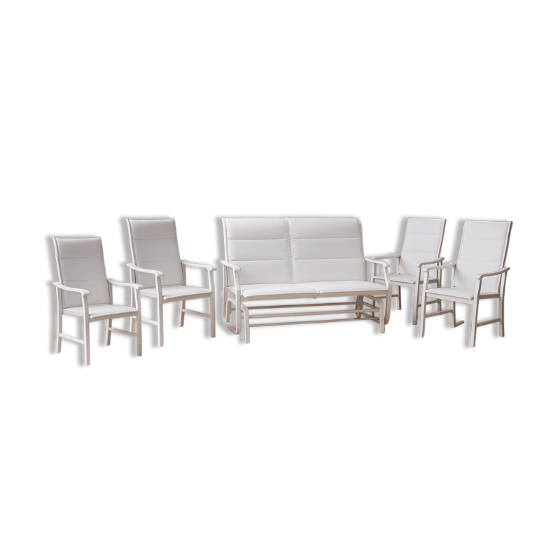 JGO. 4 SILLAS BLANCAS FIJAS D/ALUMINIO + 1 COLUMPIO MECEDOR (2 PERSONAS) P/EXTERIOR, HAMPTON BAY.