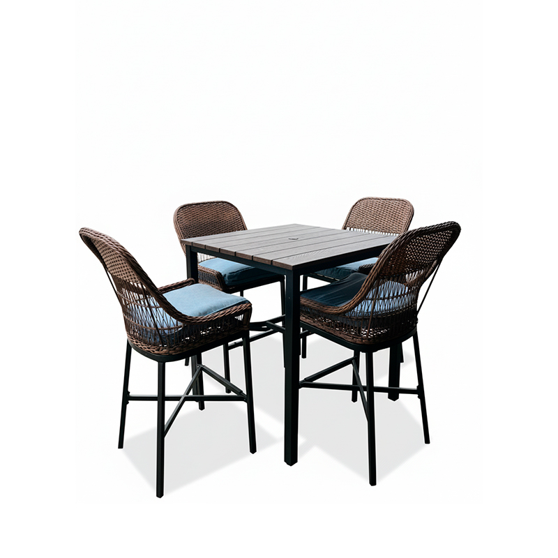 JGO. 4 SILLAS MIMBRE + 1 MESA CUADRADA D/METAL- CON COJINES -COBERTOR, HAMPTON BAY.