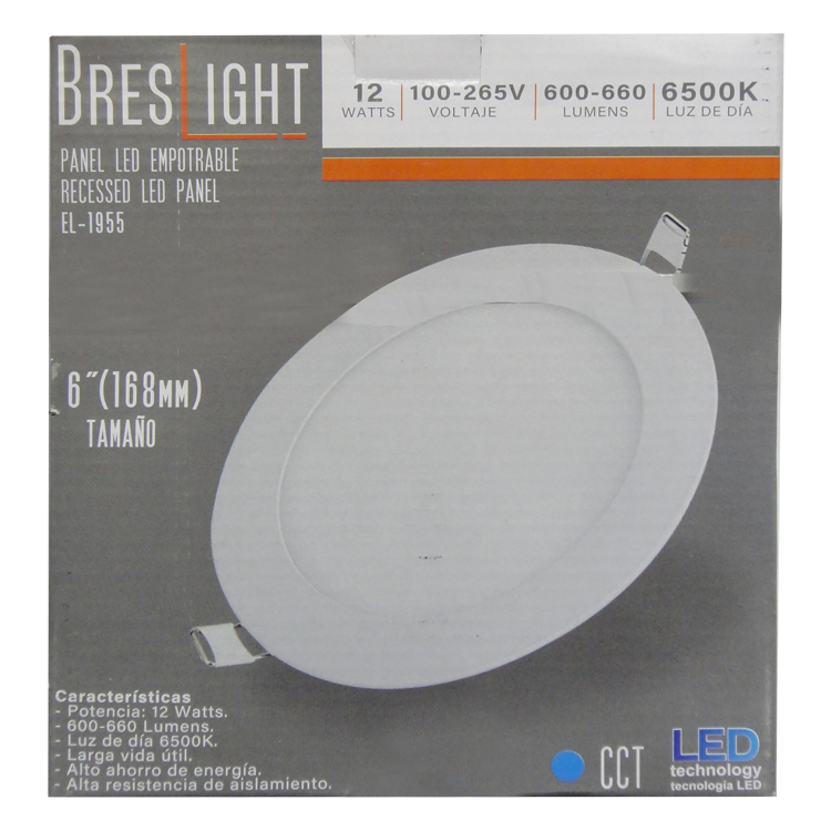 PANEL LED 6" 12W CUADRADO P/EMPOTRAR 600-660LM/100-265V, 6500K DAY LIGHT