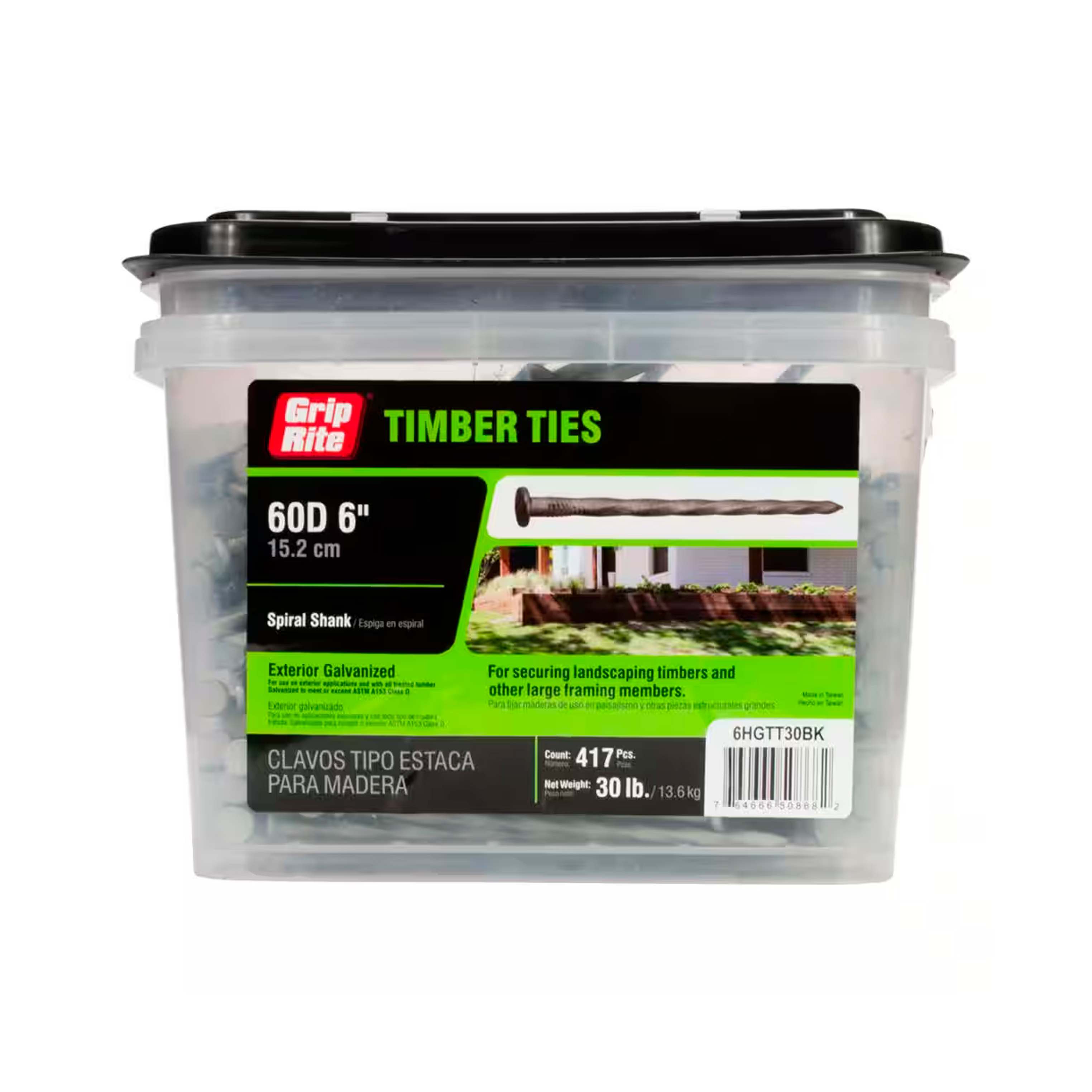 CAJA DE 417 CLAVOS ESPIRAL 6" GALVANIZADOS EN CALIENTE 30LB GRIPE RITE