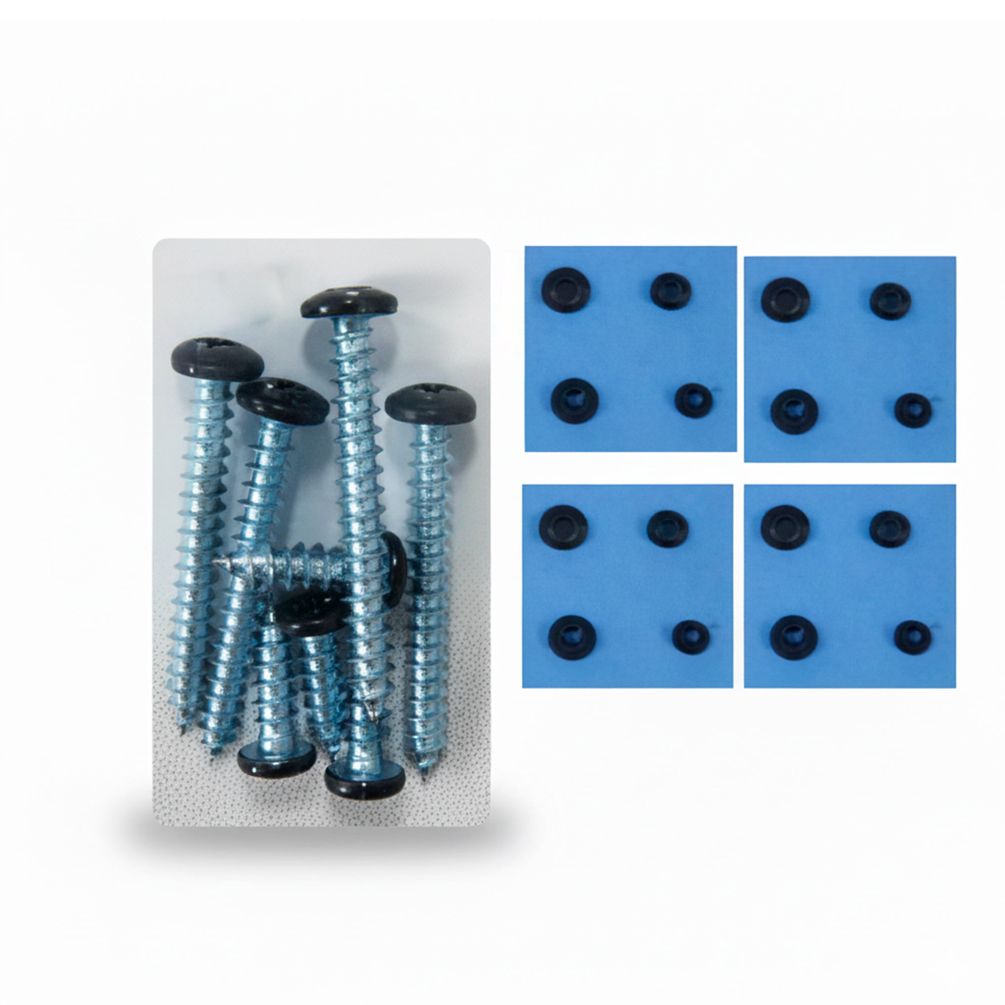 PAQ. 8 TORNILLOS (4) 1-1/2" - (4) 5/8" NEGRO MATE CON TAPONES, EVERBILT.