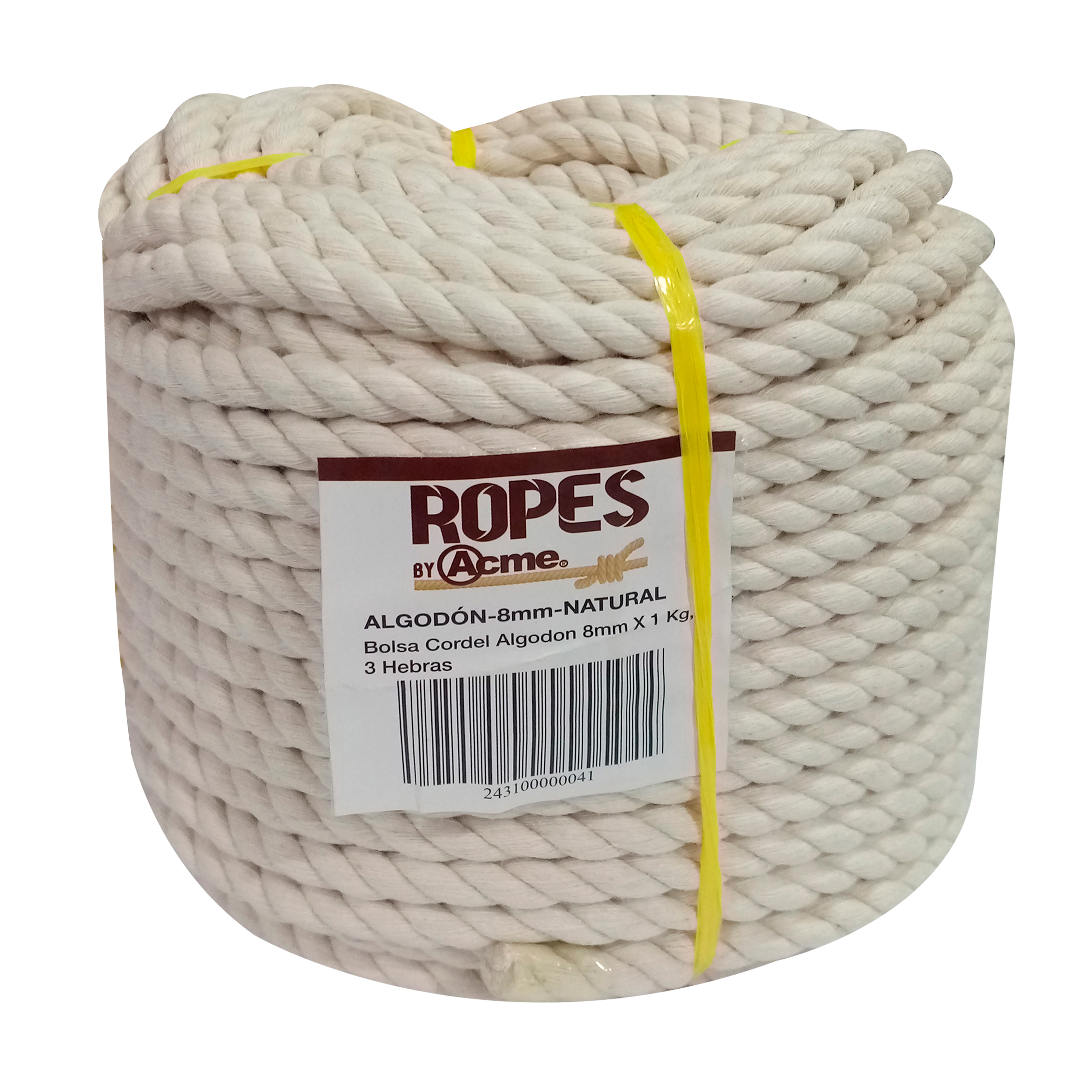 BOLSA CORDEL ALGODON 8MM X 1 KG, 3 HEBRAS.