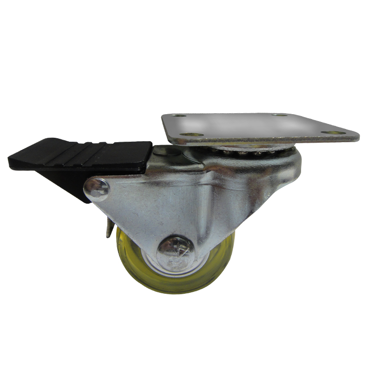 RODO GIRATORIO CON PLACA 1 1/2" HULE TRANSPARENTE AMARILLO CON FRENO DE PIE