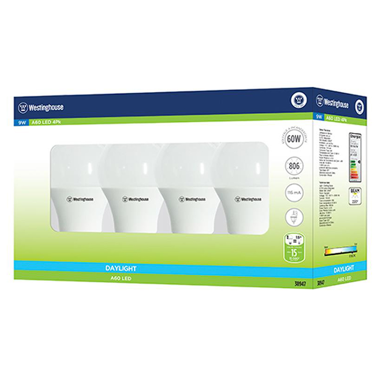 FOCO LED 9W A60 LUZ DIA 6500K CAJA MVOLT 4PK