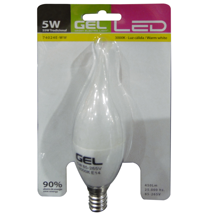 BOMBILLO LED E27 5W TIPO VELA LUZ CALIDA 3000K 85-265V 400LM