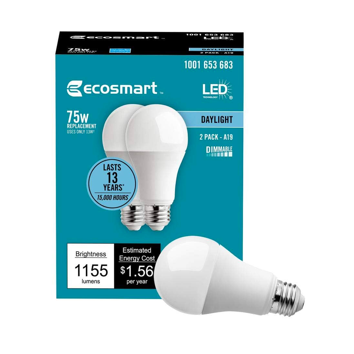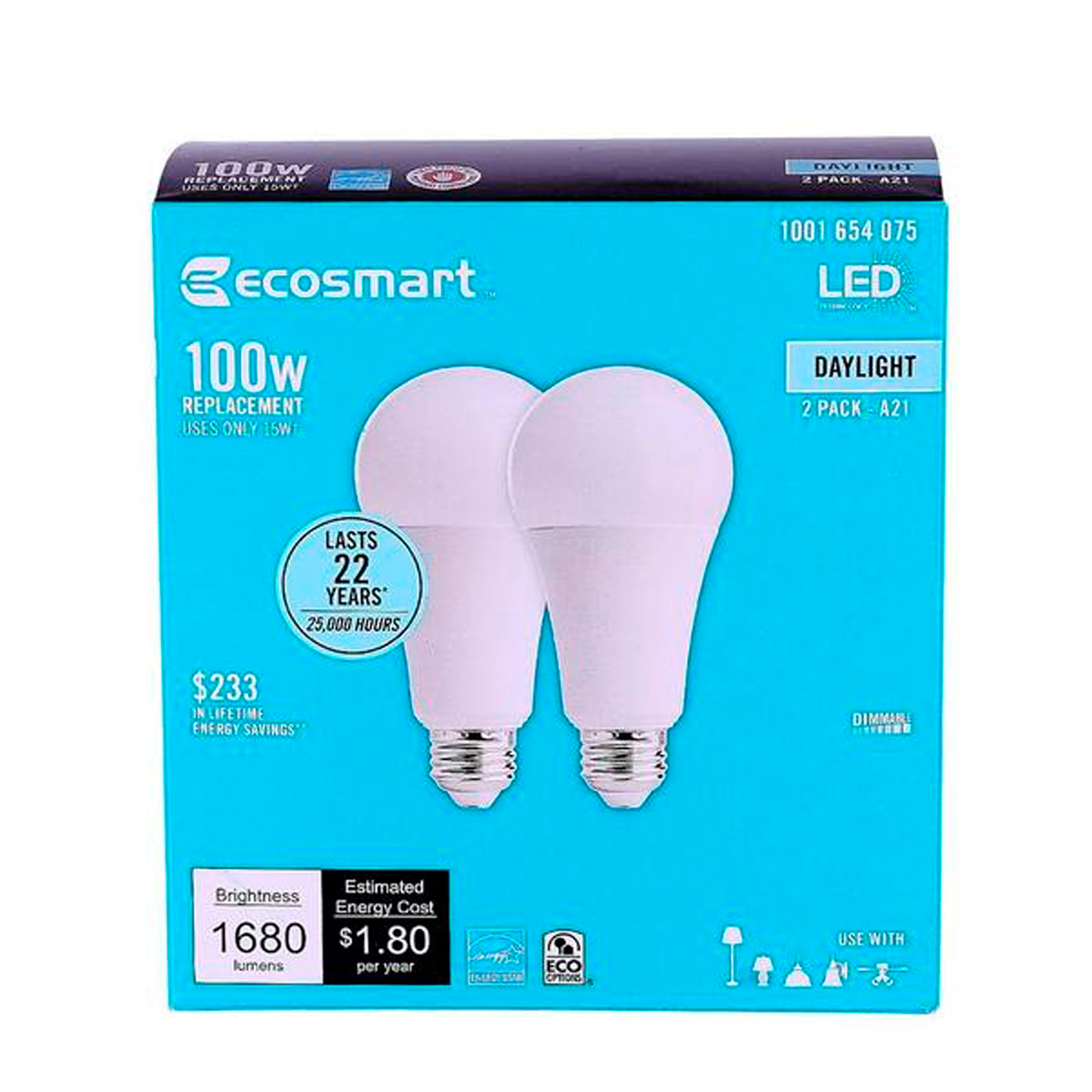 PAQ. 2 BOMBILLOS LED, 14W=100W, 5000K DIMEABLE, 1680LUMS,DAYLIGHT, ECOSMART.