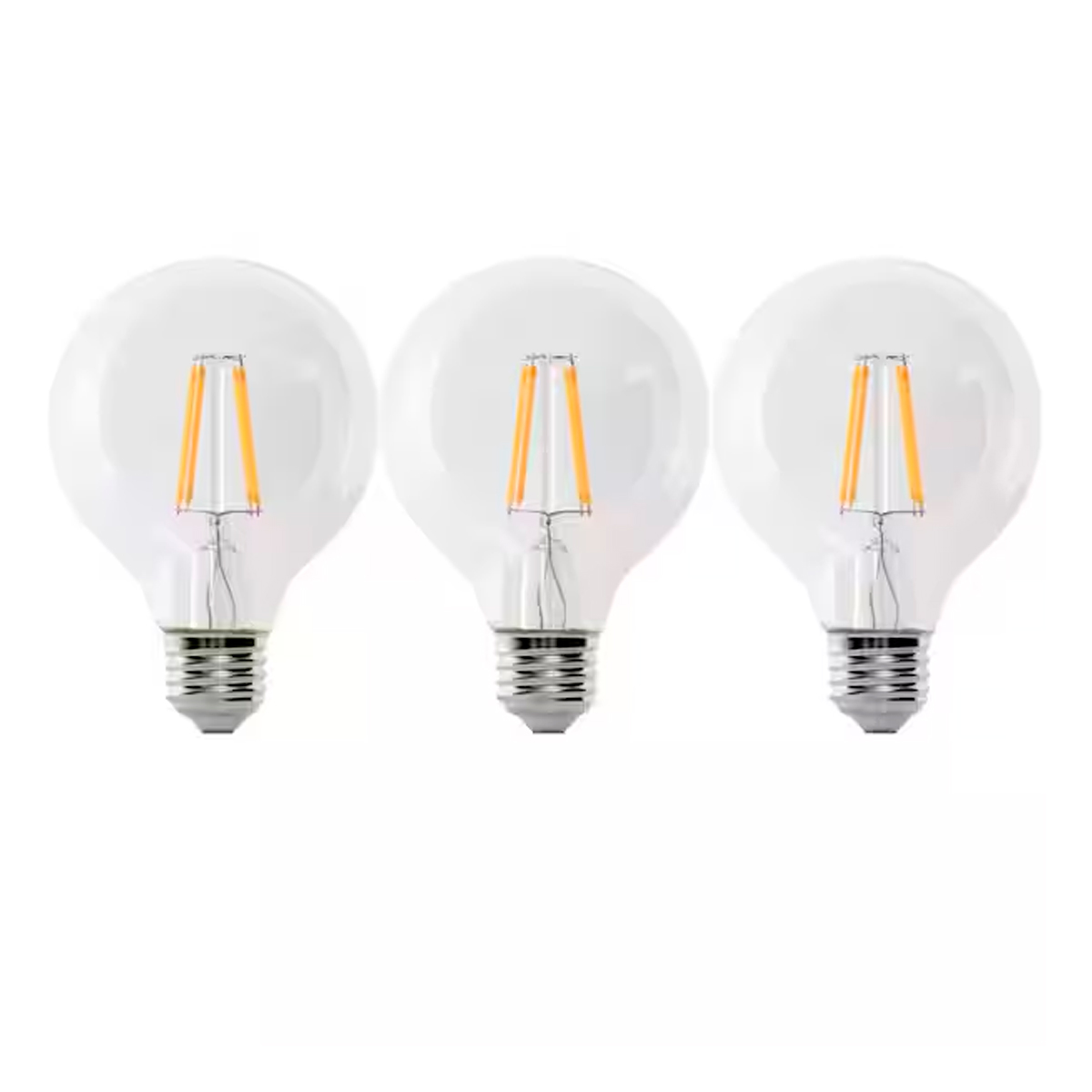 PAQ. 3 BOMBILLOS CLAROS TIPO GLOBO LED G25, 25W, DOBLE VIDA UTIL,120V, 225LUMS,3000K,E26, BRIGHT WHI