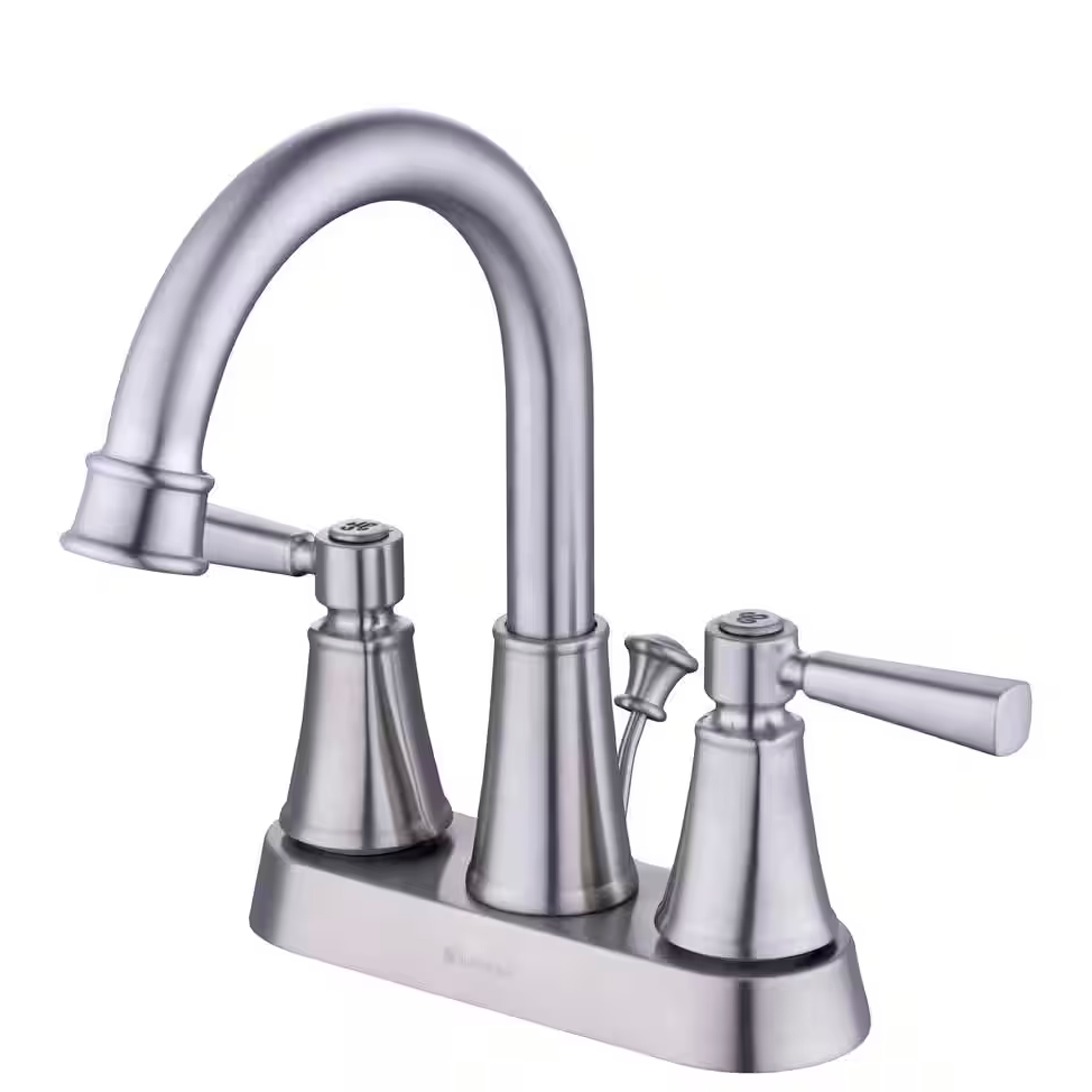 GRIFO P/BAÑO 4" PICO BAJO DOBLE MANIJA Y AGUA DE FUENTE, NIQUEL CEPILLADO, GLACIER BAY.