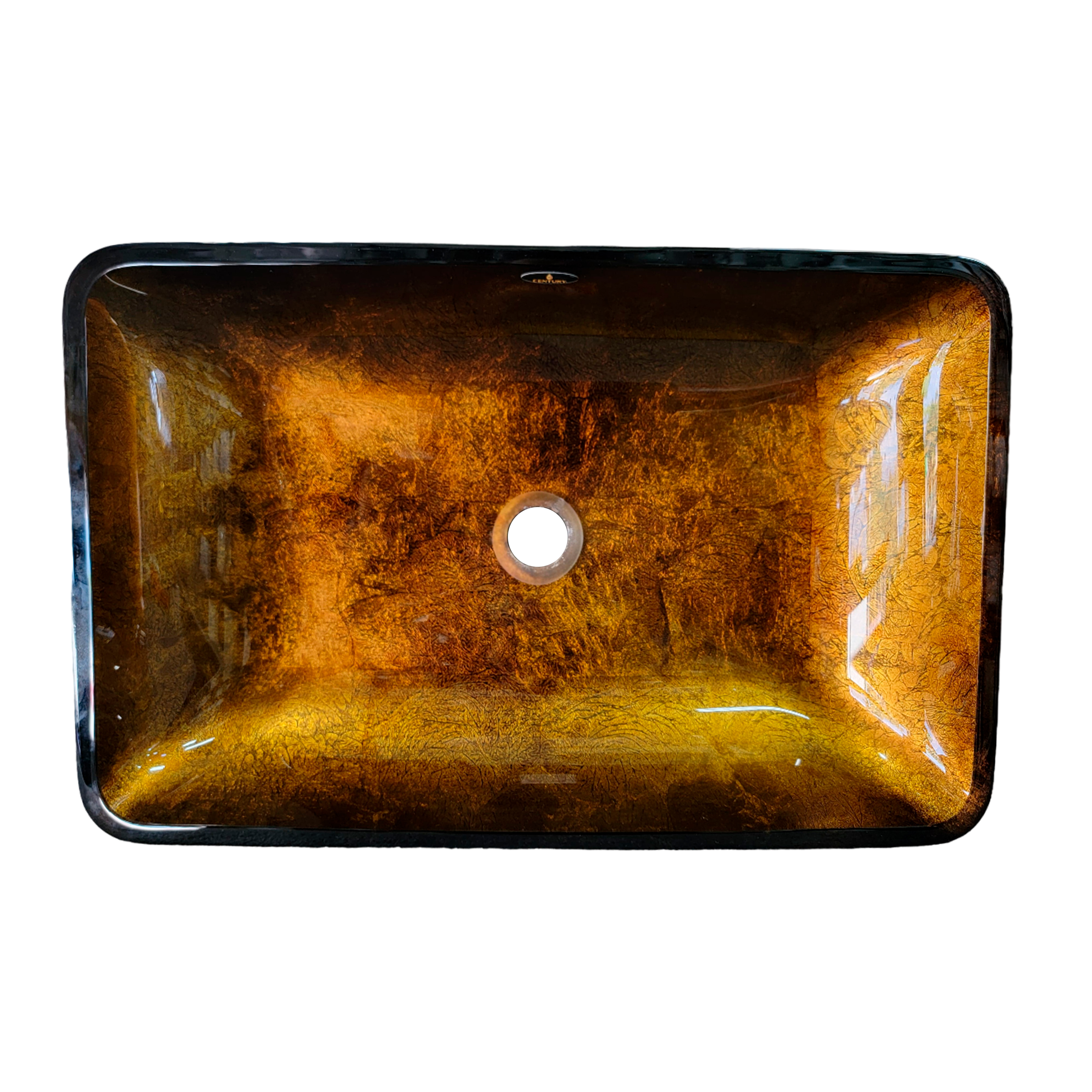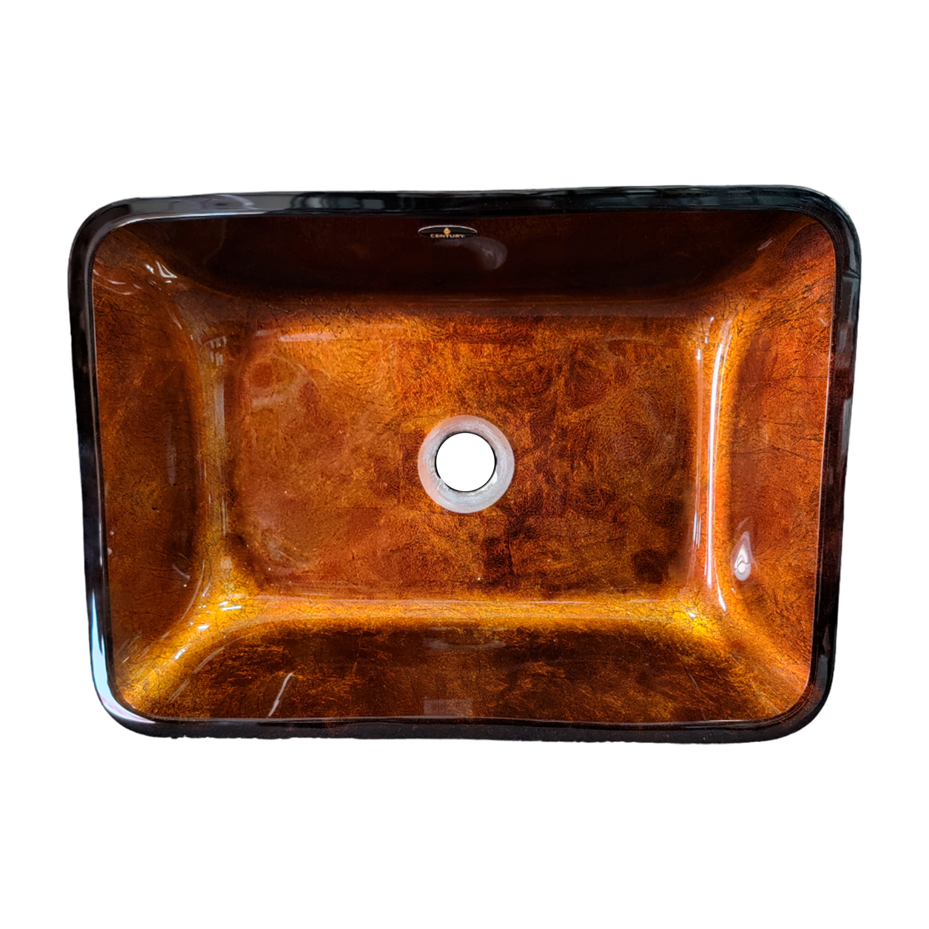 LAVAMANOS DE VIDRIO CENTURY RECTANGULAR DE SOBREPONER 460X330X105X12 CAFE BRILLANTE