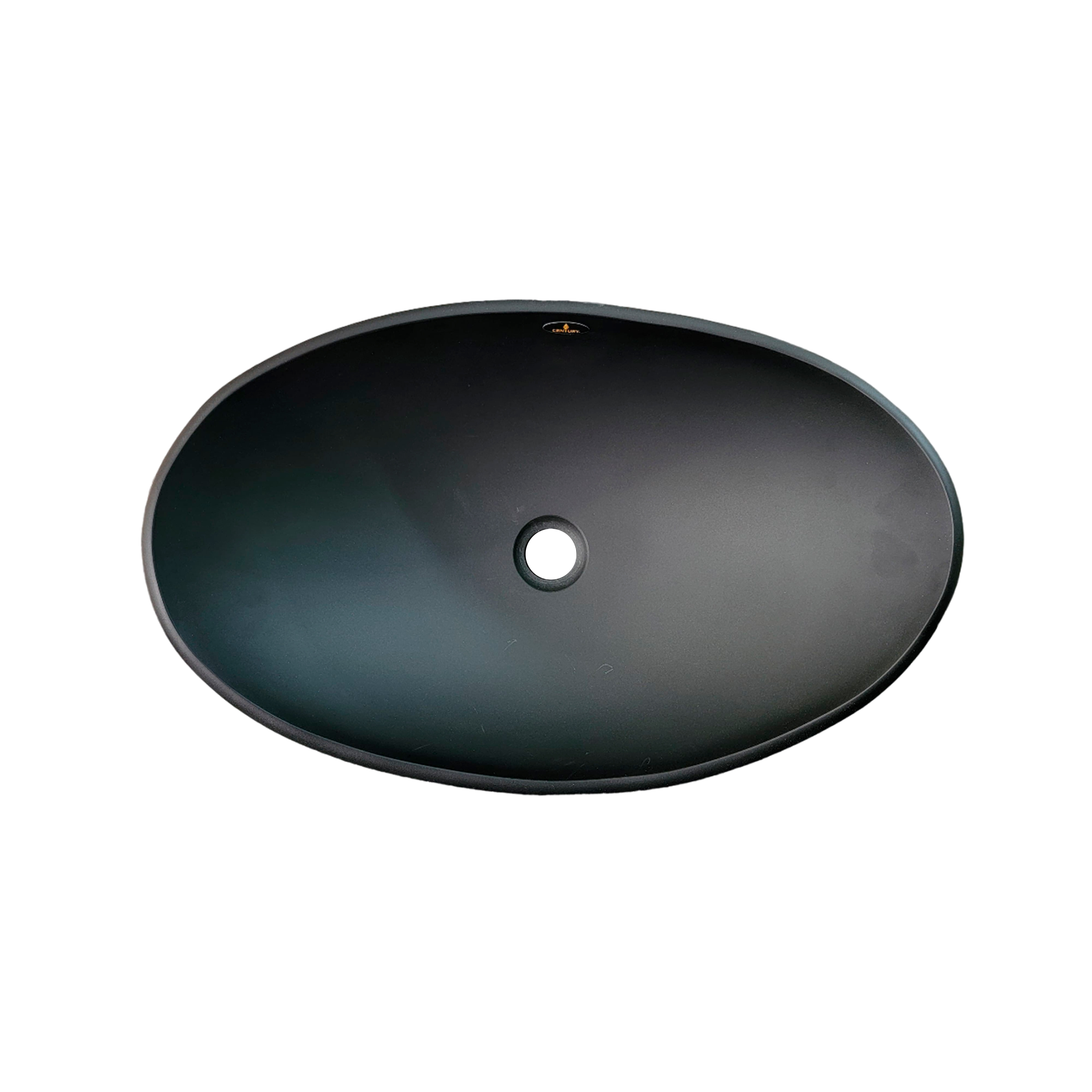 LAVAMANOS DE VIDRIO CENTURY OVALADO DE SOBREPONER 540X370X170X12 NEGRO MATE