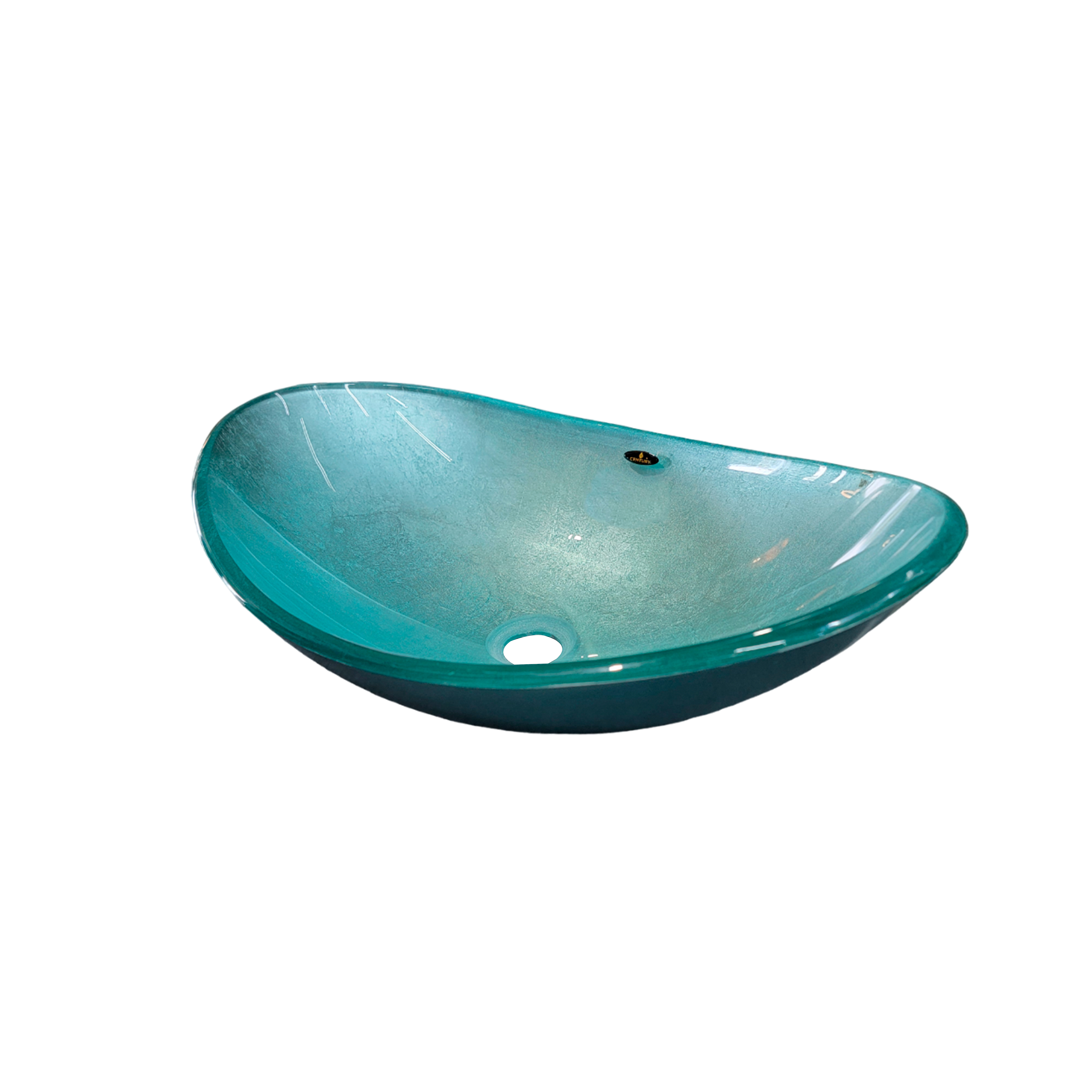 LAVAMANOS DE VIDRIO CENTURY OVALADO DE SOBREPONER 540X370X170X12 AZUL CIELO BRILLANTE