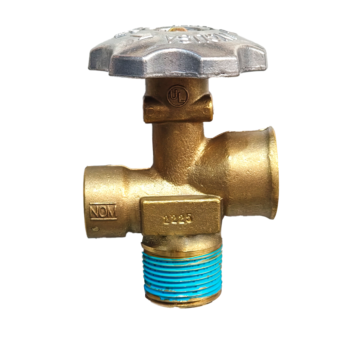 VALVULA DE SERVICIO (LLENADO) C/SEGURO P/TANQUE DE 100 A 204 LBS DE GAS LPG 3/4" NPT