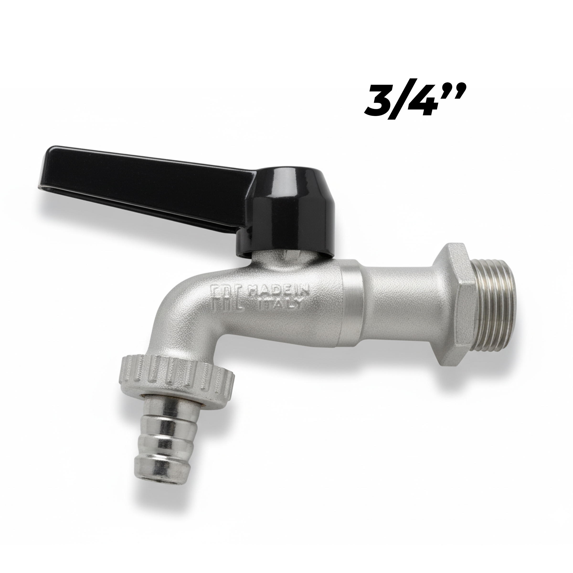 LLAVE DE CHORRO BRONCE/NIQUEL 3/4" C/PORTA MANGUERA PALANCA CORTA ALUM. MOD.689 BUGATTI 100%ITALIANA