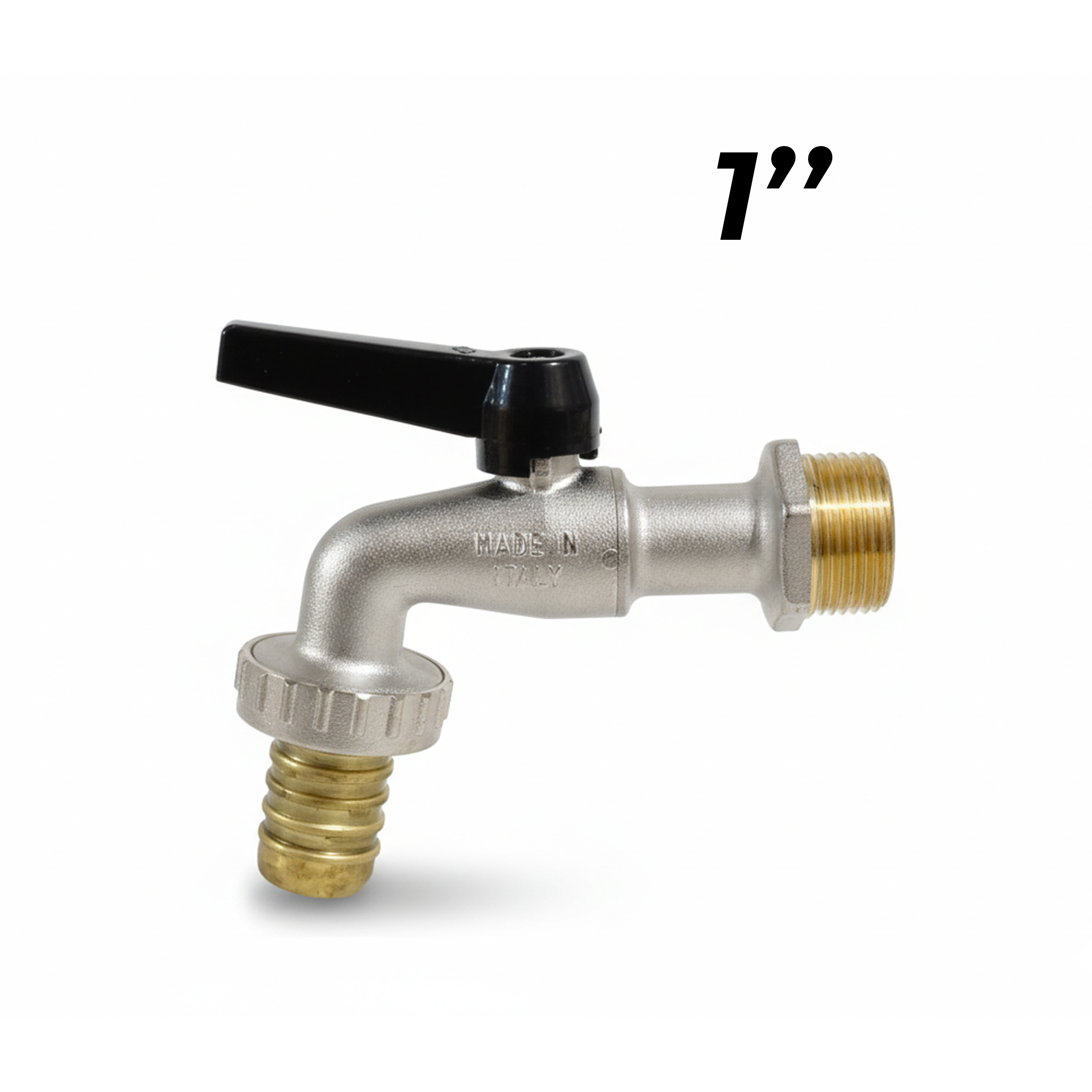 LLAVE DE CHORRO BRONCE/NIQUEL 1" C/PORTA MANGUERA PALANCA CORTA ALUM. MOD.689 BUGATTI 100%ITALIANA