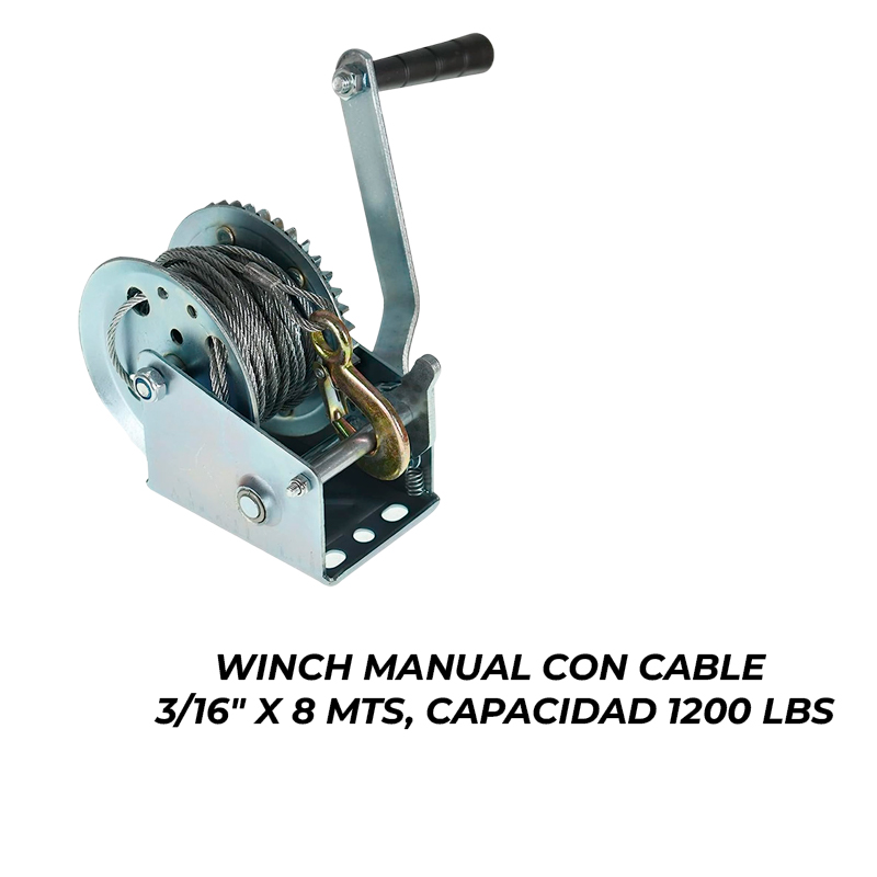 WINCH MANUAL CON CABLE 3/16" X 8 MTS, CAPACIDAD 1200 LBS