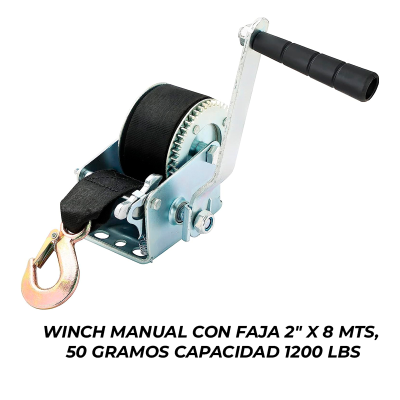 WINCH MANUAL CON FAJA 2" X 8 MTS, 50 GRAMOS CAPACIDAD 1200 LBS