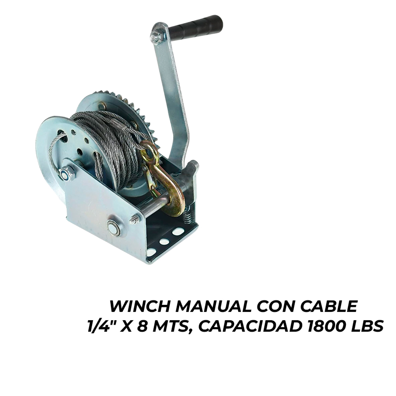 WINCH MANUAL CON CABLE 1/4" X 8 MTS, CAPACIDAD 1800 LBS