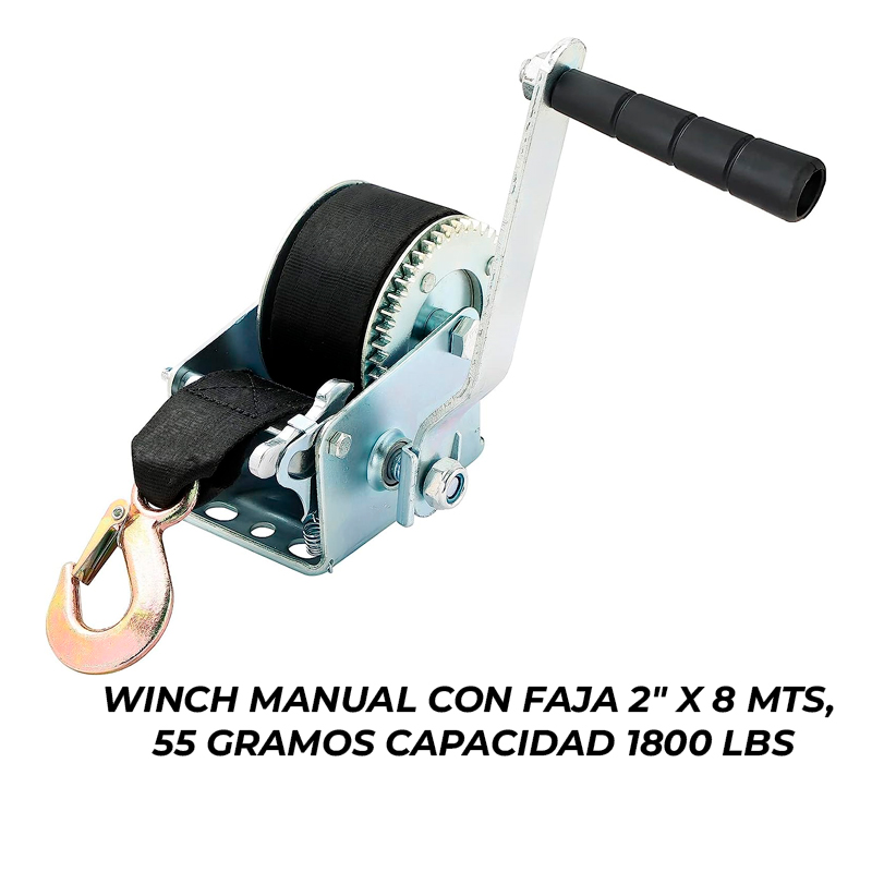 WINCH MANUAL CON FAJA 2" X 8 MTS, 55 GRAMOS CAPACIDAD 1800 LBS