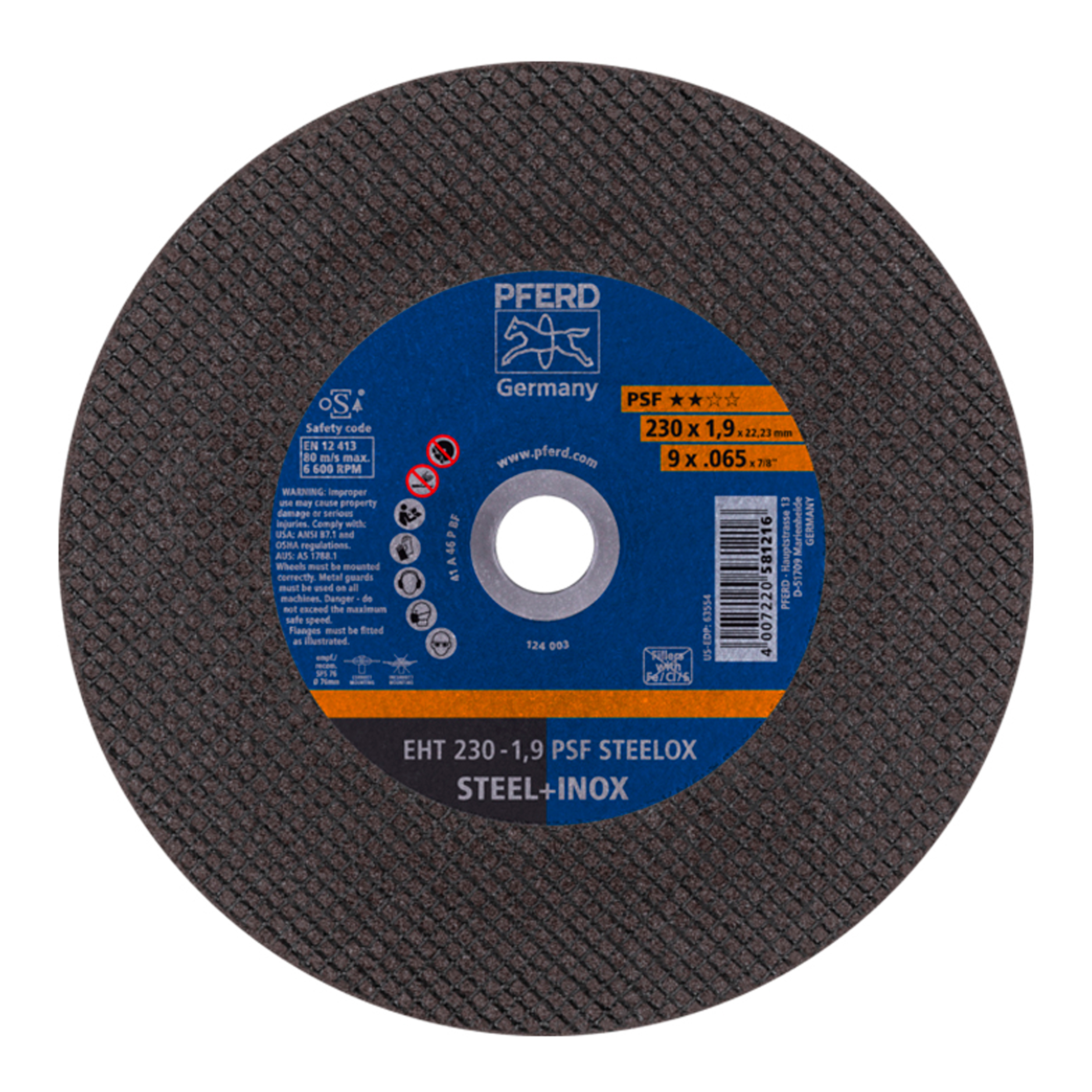 DISCO DE CORTE 9"X1.9MMX7/8" PLANO EHT ACERO INOXIDABLE PSF STEELOX