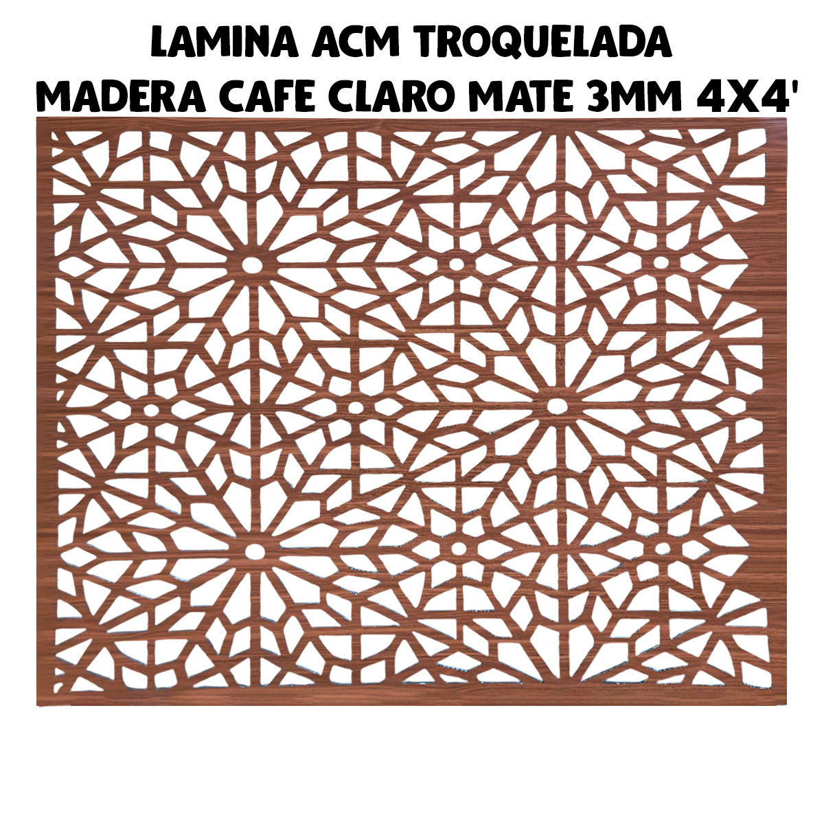 LAMINA ACM TROQUELADA MADERA CAFE CLARO MATE 3MM 4X4